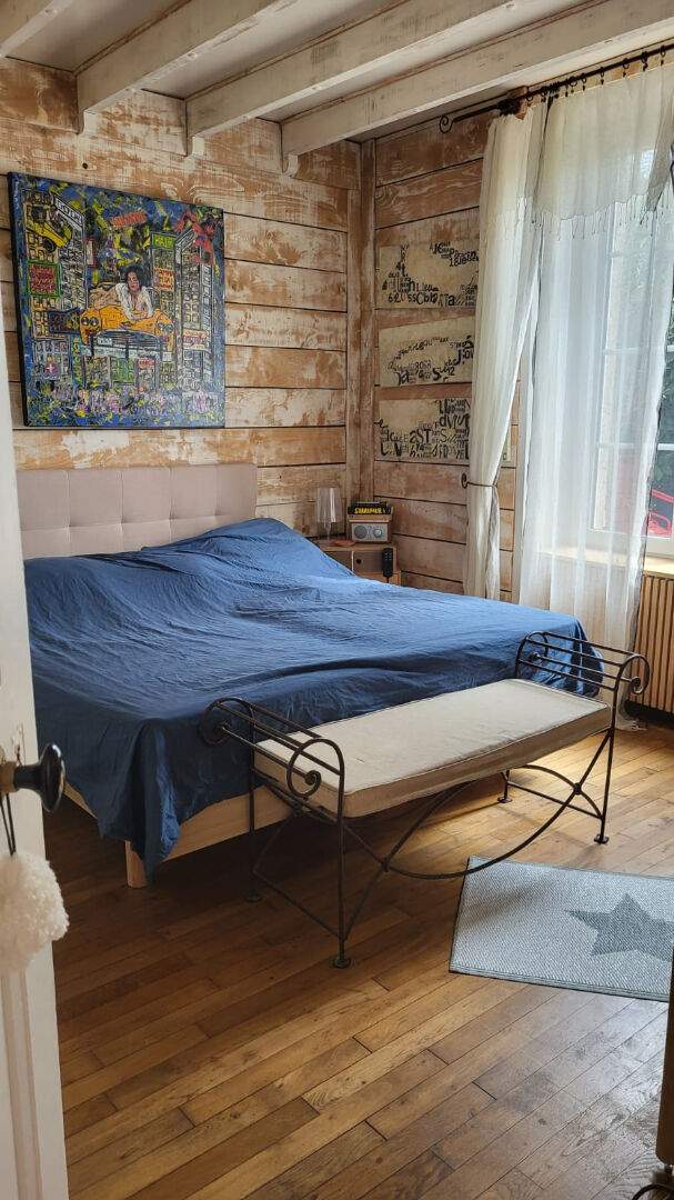 A l'étage : deux chambres avec mezzanine, une chambre avec salle de bains privative, une salle d'eau avec wc.