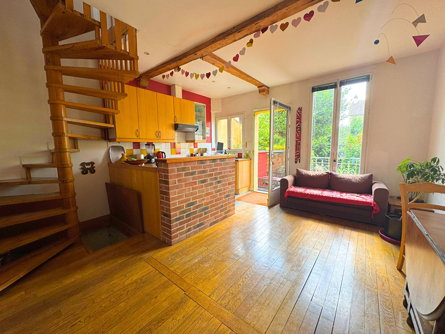 * Grande pièce de vie lumineuse avec cuisine ouverte le tout avec accès jardin et terrasse