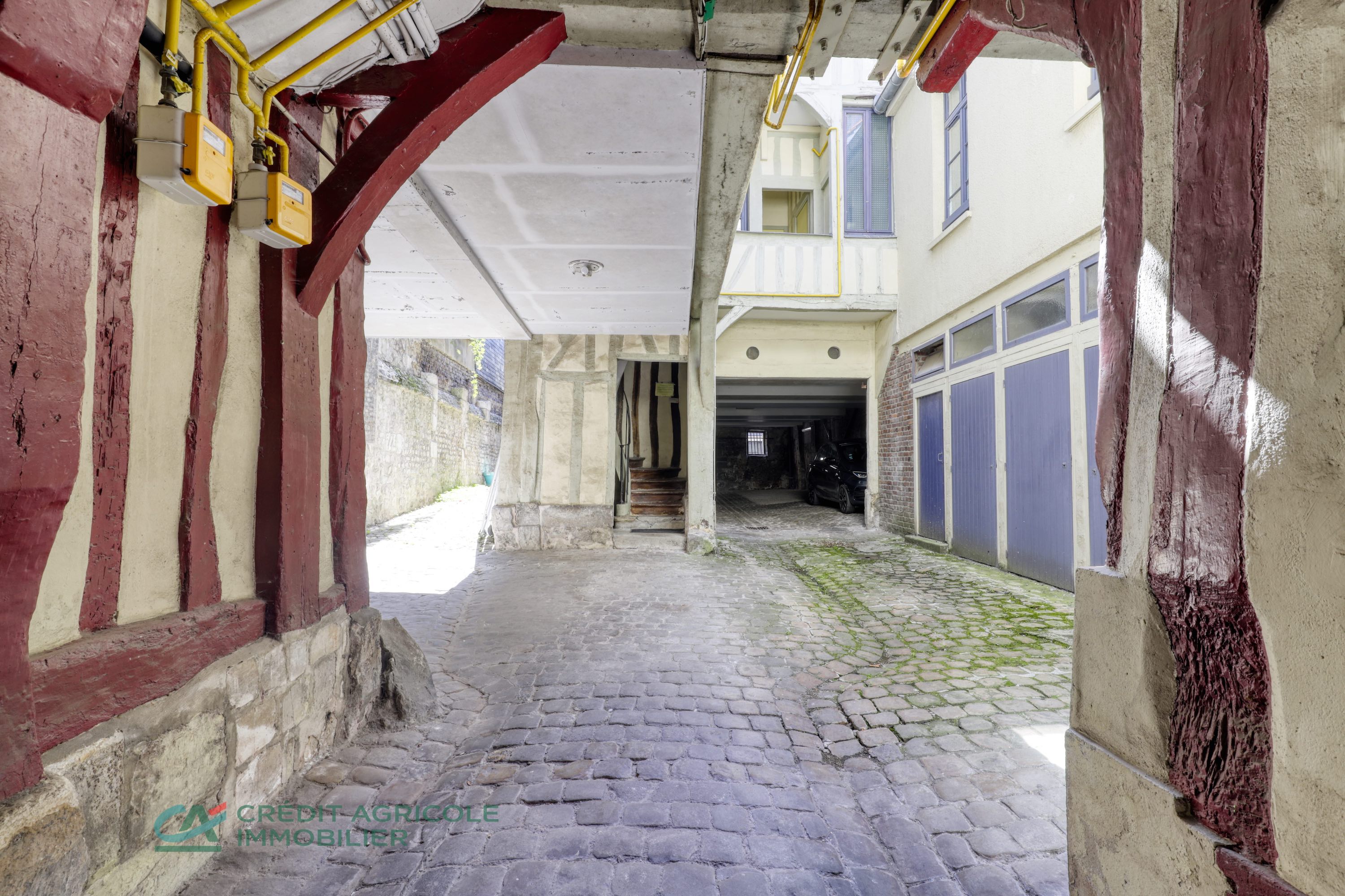 Au rez-de-chaussée, 2 locaux commerciaux loués, une cour, 4 stationnements couverts, un atelier, caves et plusieurs box offrant un potentiel non exploité.
