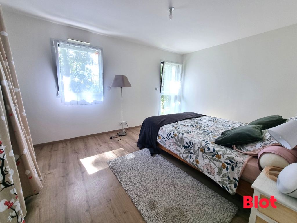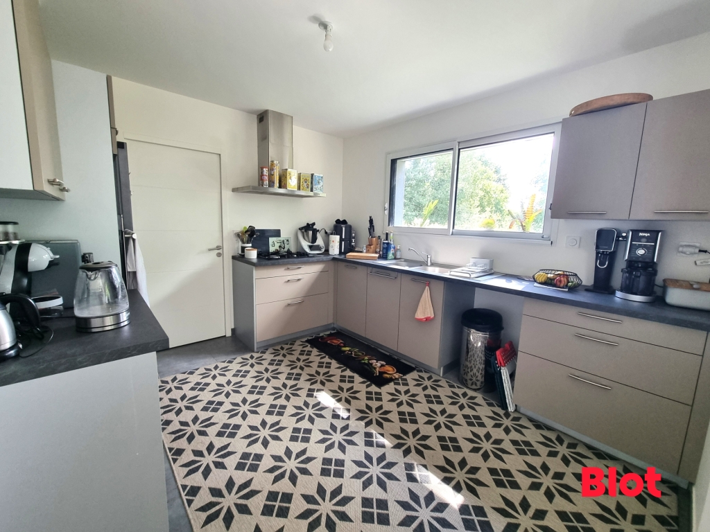 BLOT IMMOBILIER à GÉVEZÉ - Découvrez cette magnifique maison contemporaine construite en 2018, nichée dans une impasse avec une vue magnifique sur la campagne. Au rez-de-chaussée, profitez d'un vaste espace de vie baigné de lumière grâce à une double exposition nord-sud, une cuisine ouverte entièrement équipée, et une chambre avec salle d'eau attenante, ainsi qu'un WC.