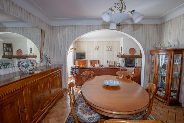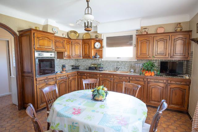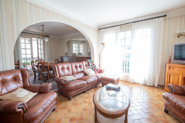 A l'étage (118m2) : une grande entrée, une cuisine indépendante avec cellier, un spacieux double séjour avec cheminée et balcon donnant sur une véranda, 3 grandes chambres, salle d'eau et wc.