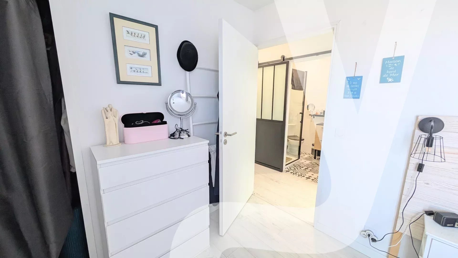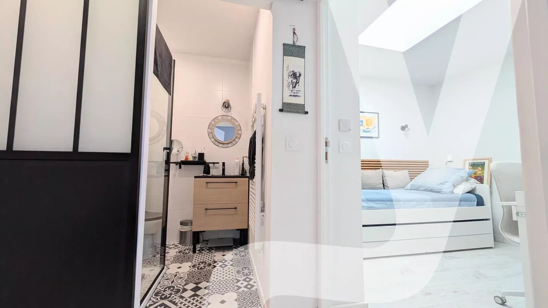 À l’étage : chambre, bureau lumineux et salle d’eau contemporaine