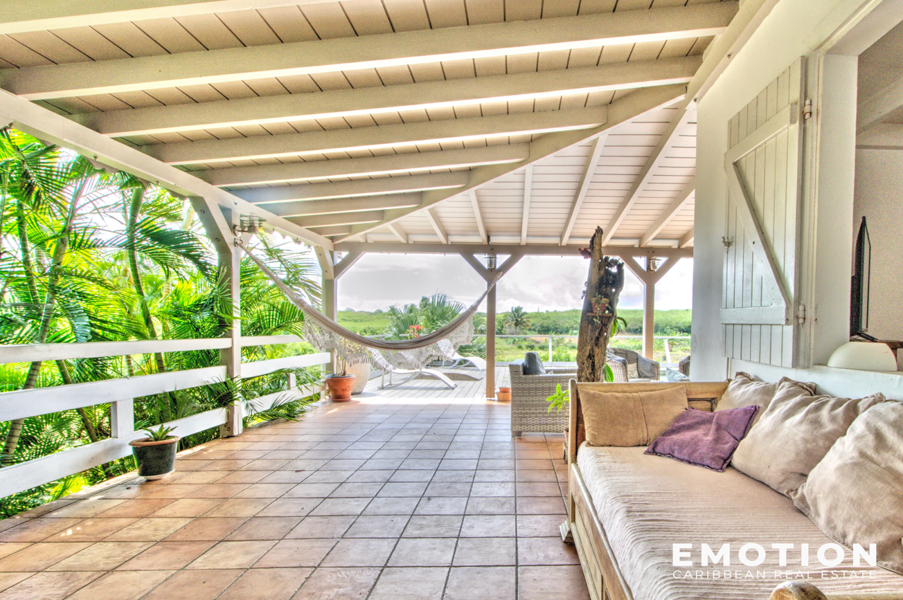 Les espaces de détente autour de la piscine, la terrasse couverte de plus de 57 m2 ainsi que le carbet vous permettent de profiter de la vue sur la nature environnante sans vis à vis.