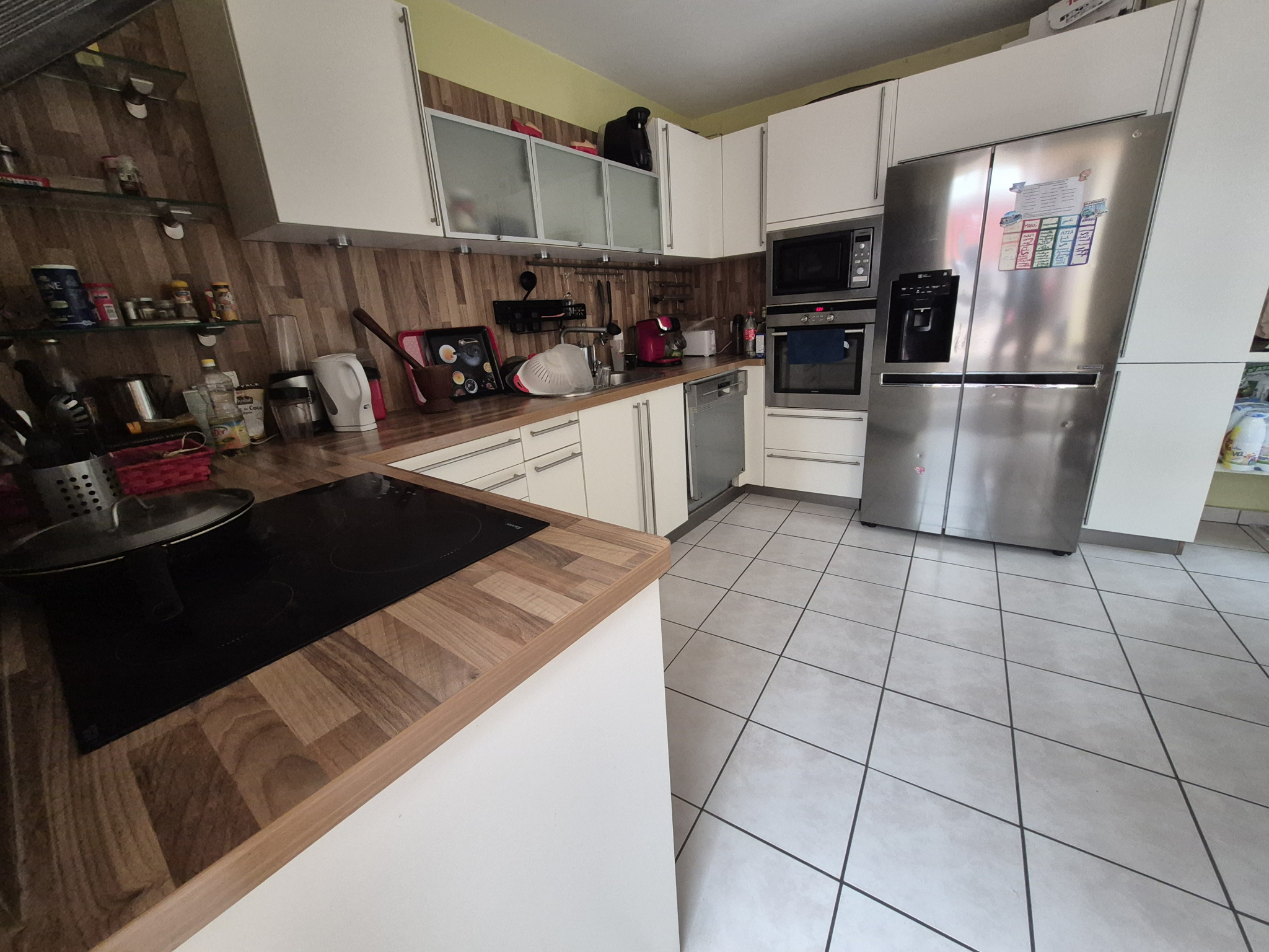 Une cuisine aménagée et équipée, ouverte sur une grande véranda lumineuse,