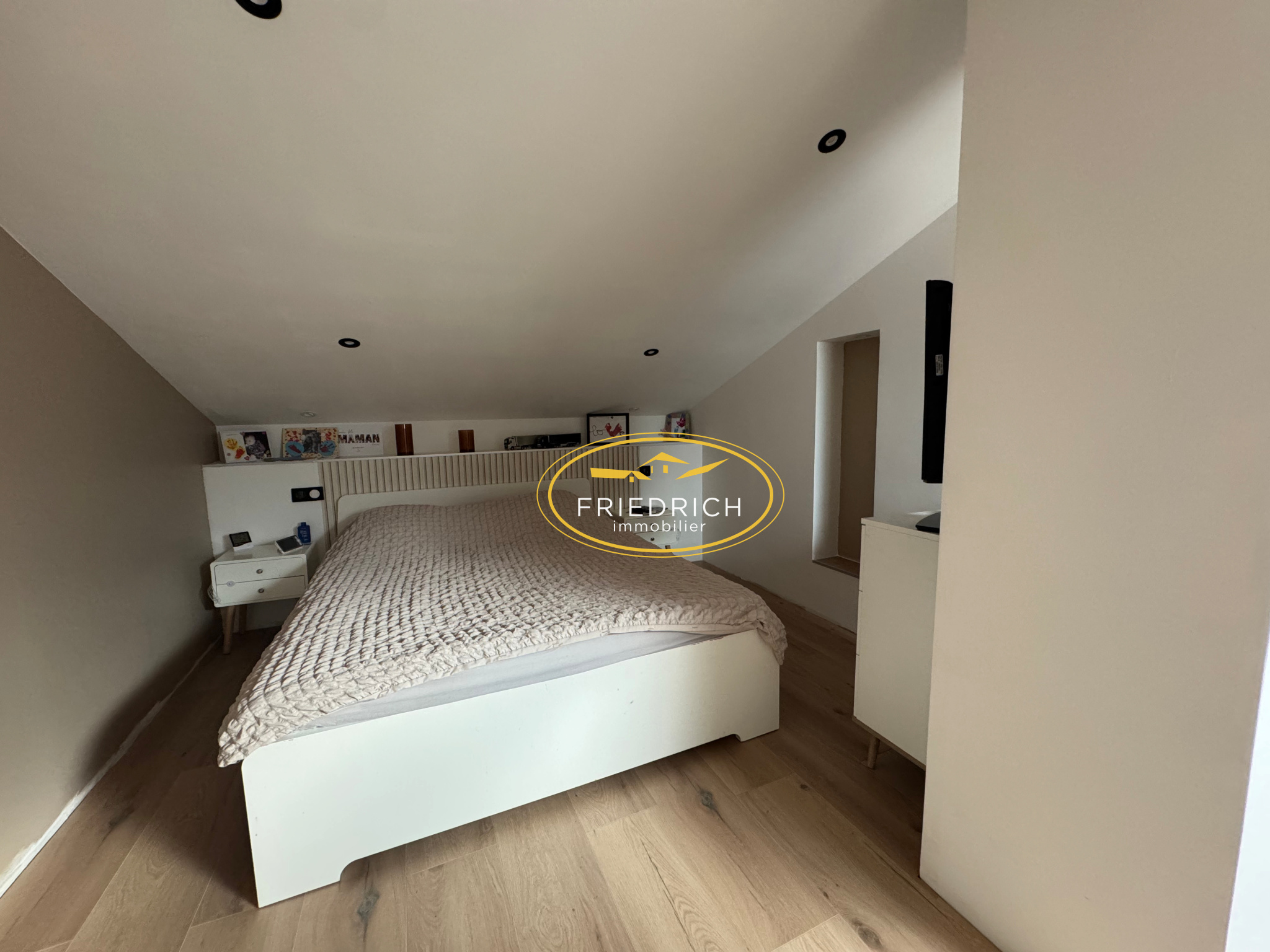 - Mezzanine (27m2 au sol/ 11m2 habitable) : sol parquet, velux ;