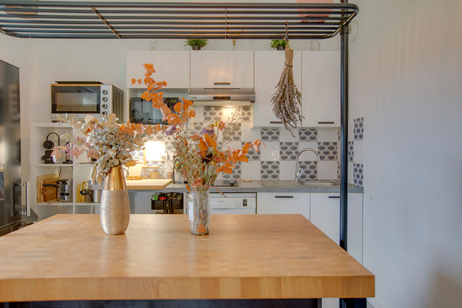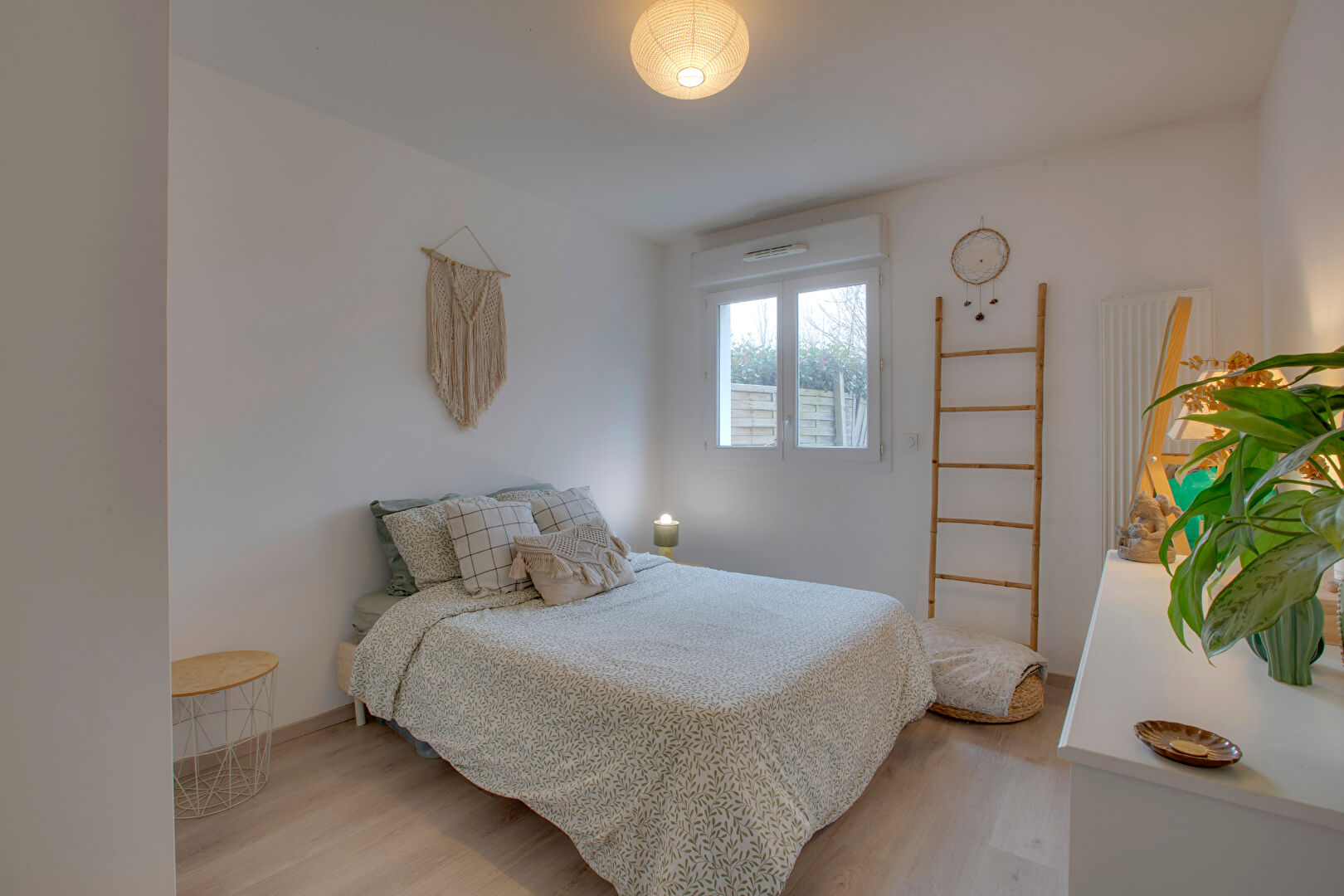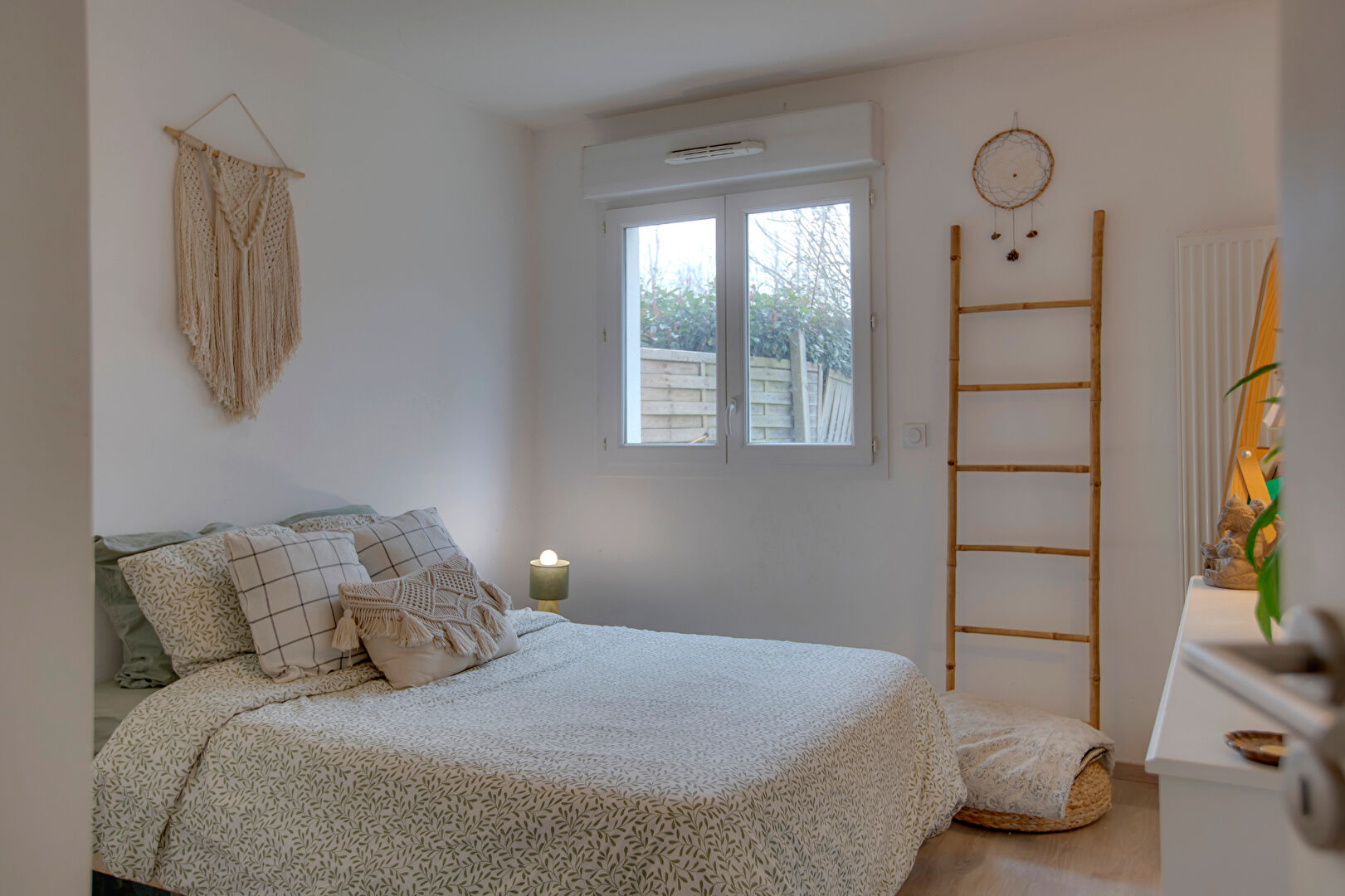 Côté nuit, une chambre confortable avec placard et une grande salle d'eau complètent l'ensemble.