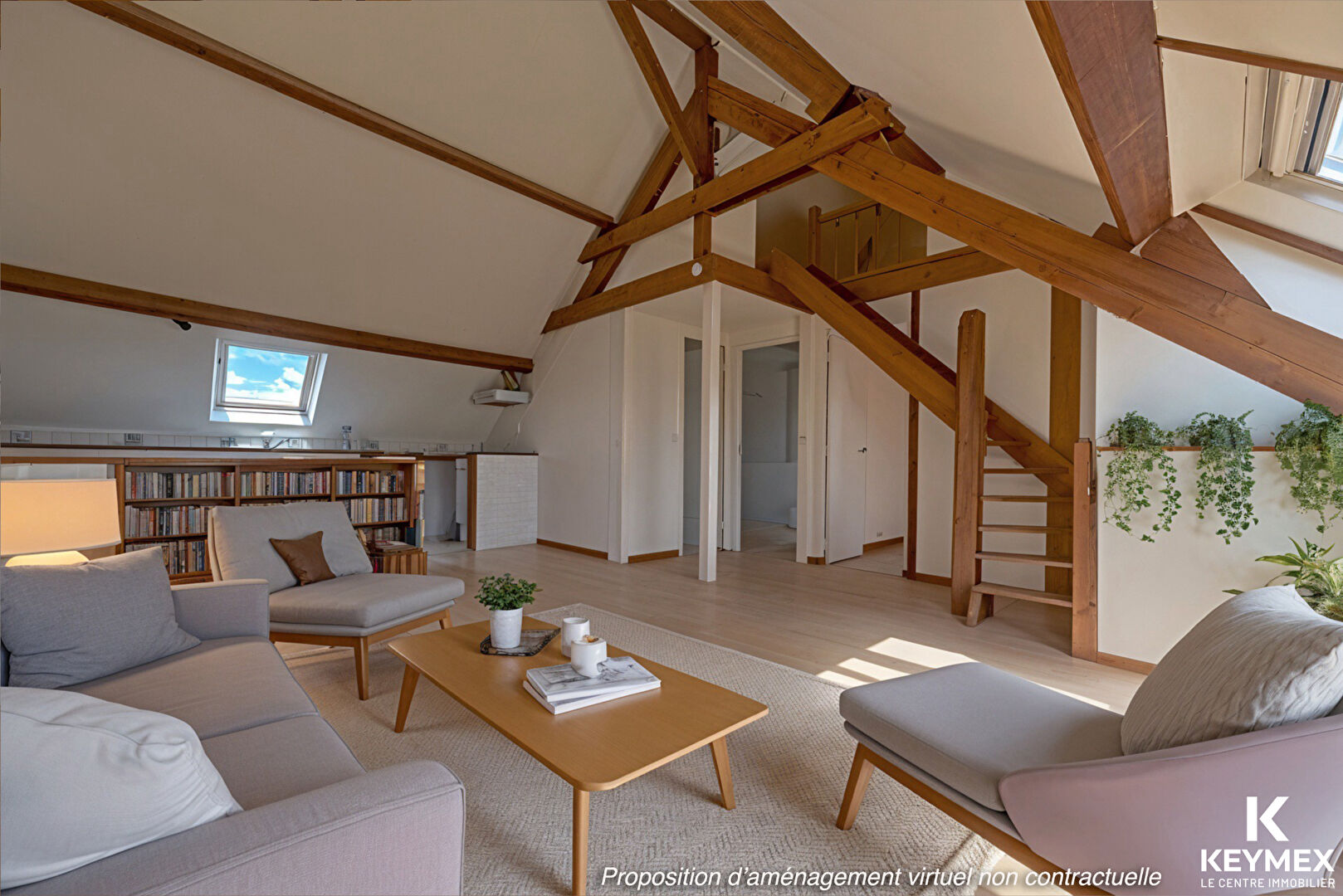 D'une superficie de 41,41 m² loi Carrez (et 68,47 m² au sol), il se compose d'un vaste séjour lumineux avec cuisine ouverte, de deux chambres, d'une salle d'eau avec WC, ainsi que d'une mezzanine pouvant accueillir un couchage d'appoint ou offrir un espace de rangement supplémentaire.