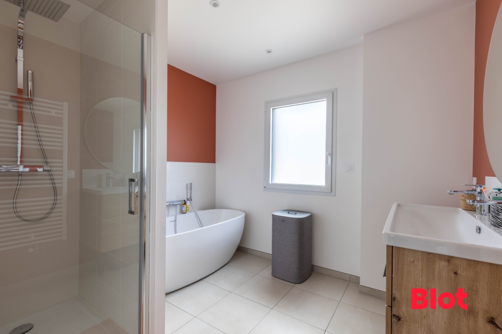 À l'étage, chacun trouve son havre de paix : trois chambres confortables, une salle d'eau élégante et moderne et des espaces optimisés pour le quotidien.