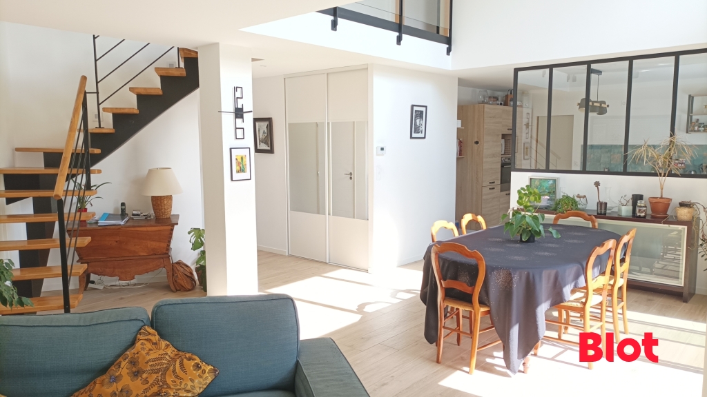 En parfait état, cette maison propose également de belles prestations : garage attenant avec mezzanine pour le stockage, poêle à bois, chauffage au gaz de ville, menuiseries en double vitrage et toiture en zinc garantissant une excellente performance énergétique.