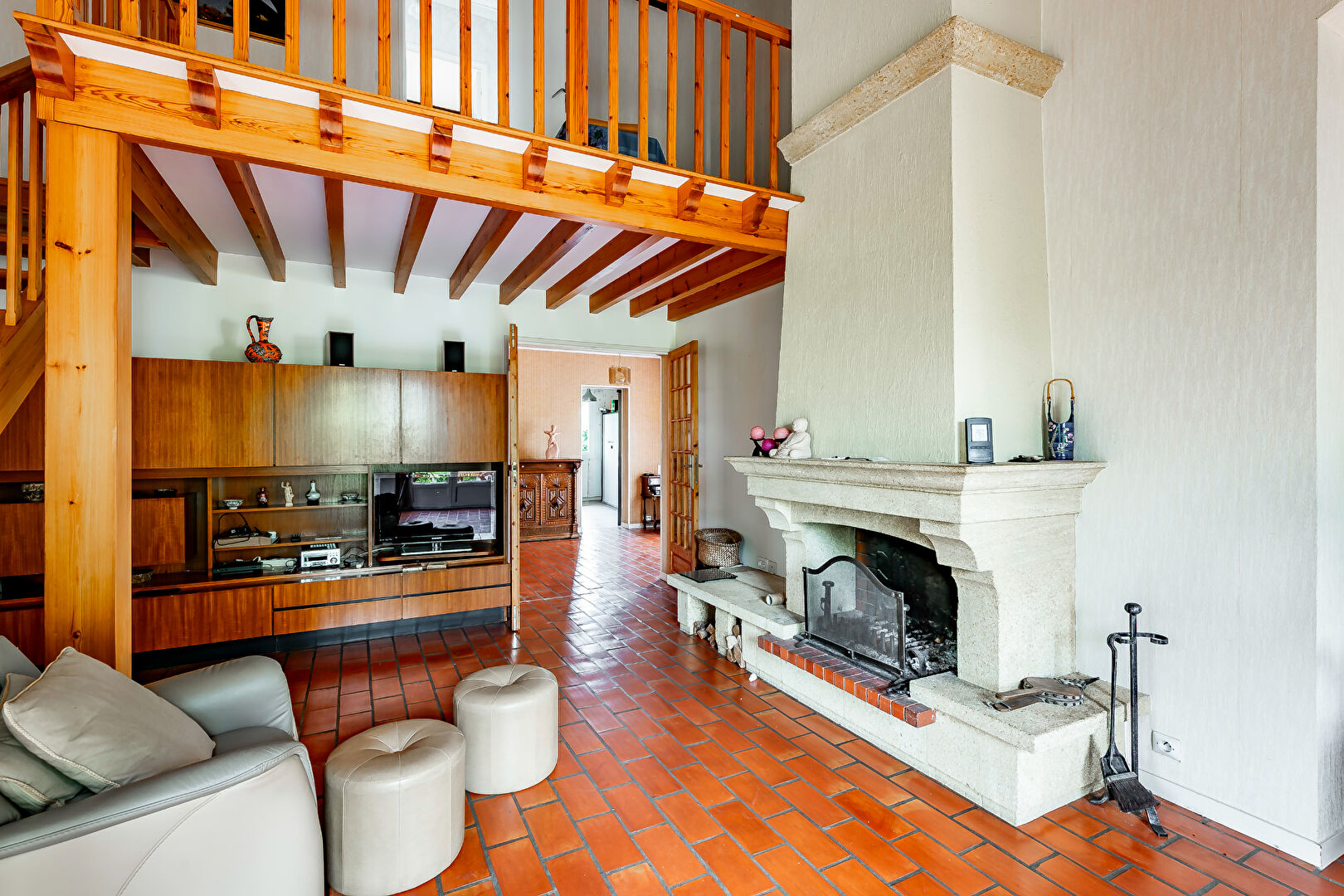 A l'étage, une mezzanine, deux chambres dont une avec balcon, une salle d'eau avec WC et un grenier.
