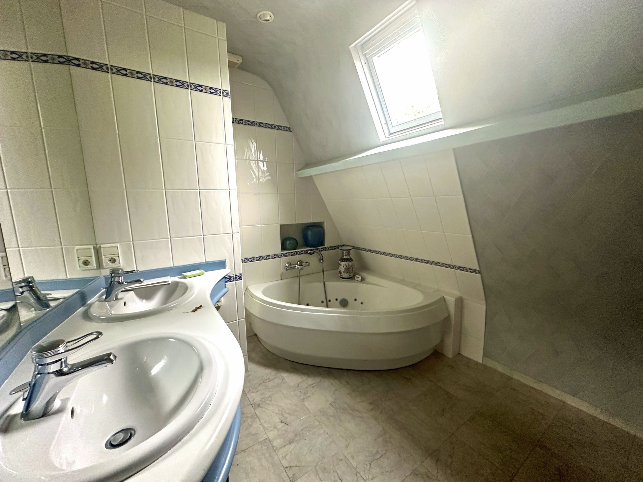 Huisseries en aluminium double vitrage avec volets roulants. Rénovation complète réalisée il y a 20 ans, uniquement par des artisans.