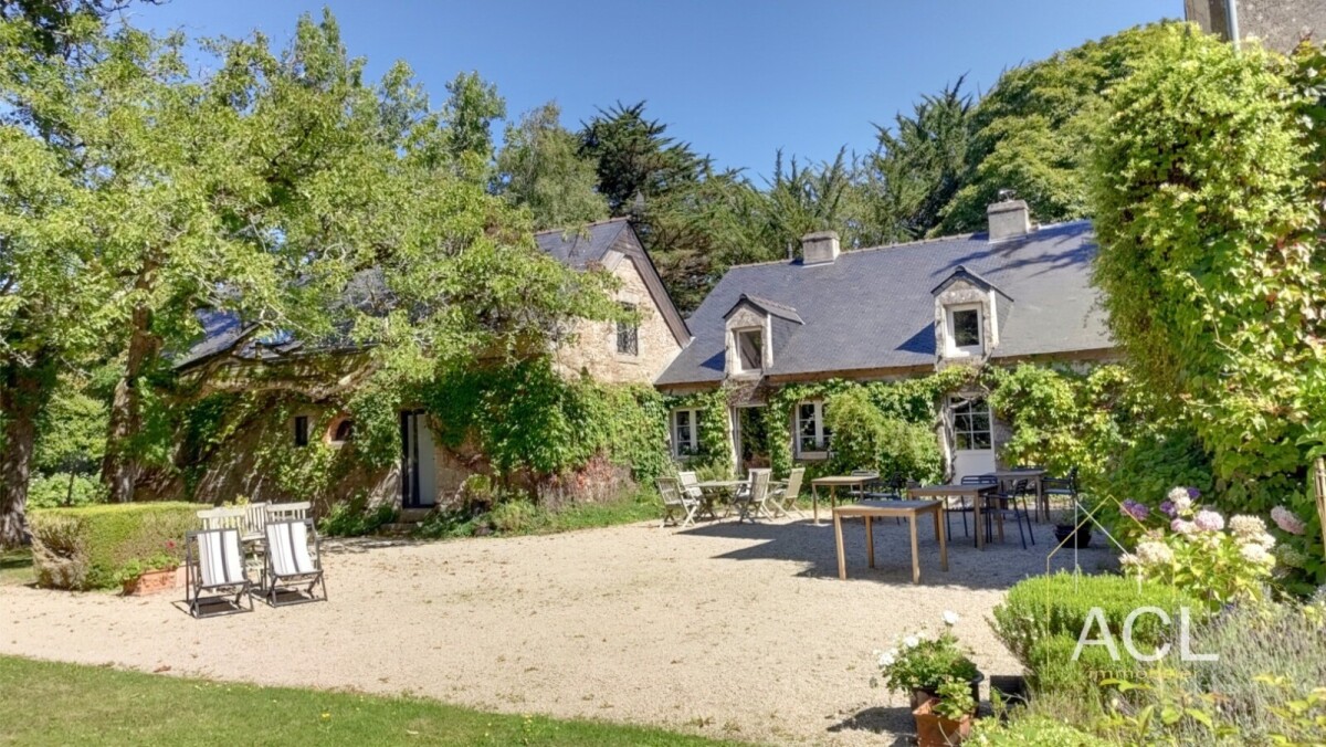 Depuis la rue, rien ne laisse deviner la présence de ce manoir, discrètement dissimulé derrière un grand portail. Une fois ce dernier franchi, on découvre une somptueuse propriété de plus de 630 m² proposée par ACL Immobilier, édifiée en 1767 à l'époque de la Compagnie des Indes. Située à proximité de Lorient, elle est implantée au coeur d'un parc arboré et fleuri de 5 900 m², ceint de hauts murs en pierre.