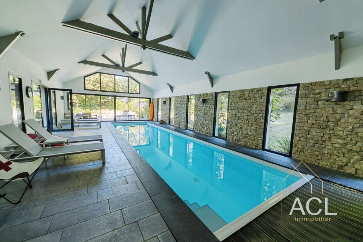 La cuisine équipée, séparée du salon par une verrière rétro, ajoute une touche de charme supplémentaire à l'ensemble. Une piscine intérieure de 12 x 3 m, chauffée à 29 °C, s'ouvre sur une terrasse propice à la détente. À proximité se trouve un espace bien-être avec sauna et hammam.