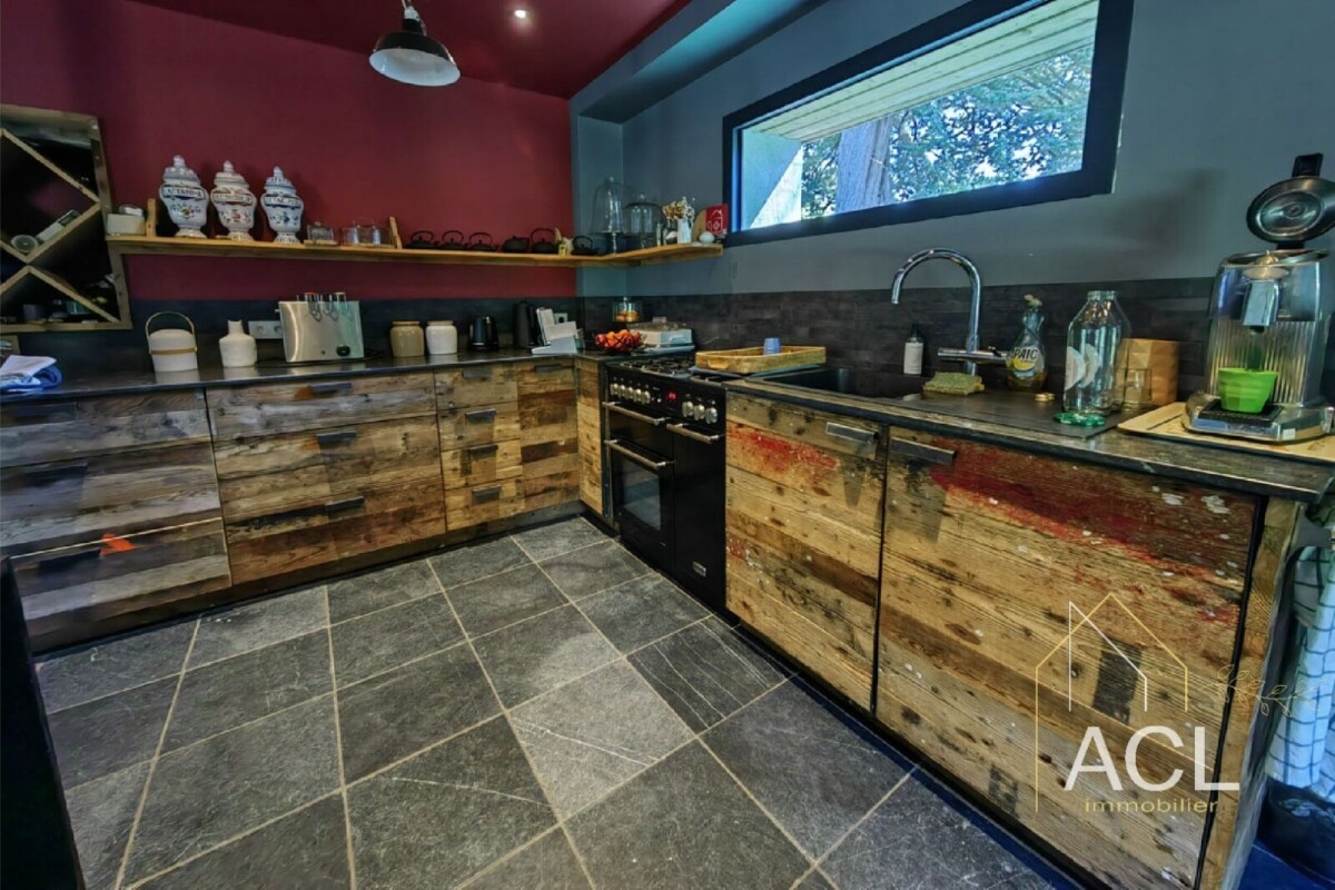 Attenant à la maison d'hôtes, le manoir de 230 m², réparti sur trois niveaux, vient rehausser l'ensemble. Le rez-de-chaussée propose une belle pièce de vie salon/salle à manger de plus de 50 m², avec un sol en carreaux de ciment noir et blanc. Il comprend également une cuisine dinatoire indépendante de 24 m², un salon bibliothèque, ainsi qu'un couloir distribuant une salle de bains, une salle de massage, une chambre et des toilettes. Un escalier en chêne mène à l'étage, où se trouvent deux chambres, une salle de bains, des toilettes, ainsi qu'une suite parentale avec salle d'eau privative. Enfin, le dernier niveau abrite une salle de jeux, une chambre et une salle d'eau.
