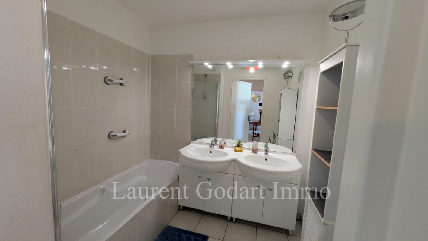 Il propose une entrée avec placard, un séjour avec cuisine équipée donnant sur une terrasse couverte de près de 10m², 2 grandes chambres de 13 et 14m² avec placards, un WC et une salle de bains.
