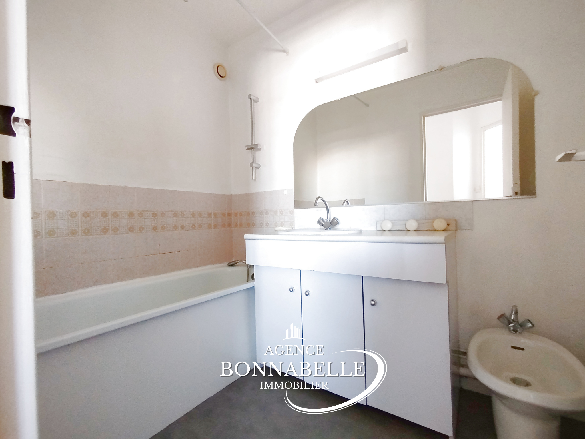 L'appartement se compose d'une grande entrée avec un débarras et un placard, d'un séjour donnant accès au balcon, d'une cuisine indépendante aménagée, d'une chambre avec accès au balcon, d'une salle de bain et d'un WC indépendant.