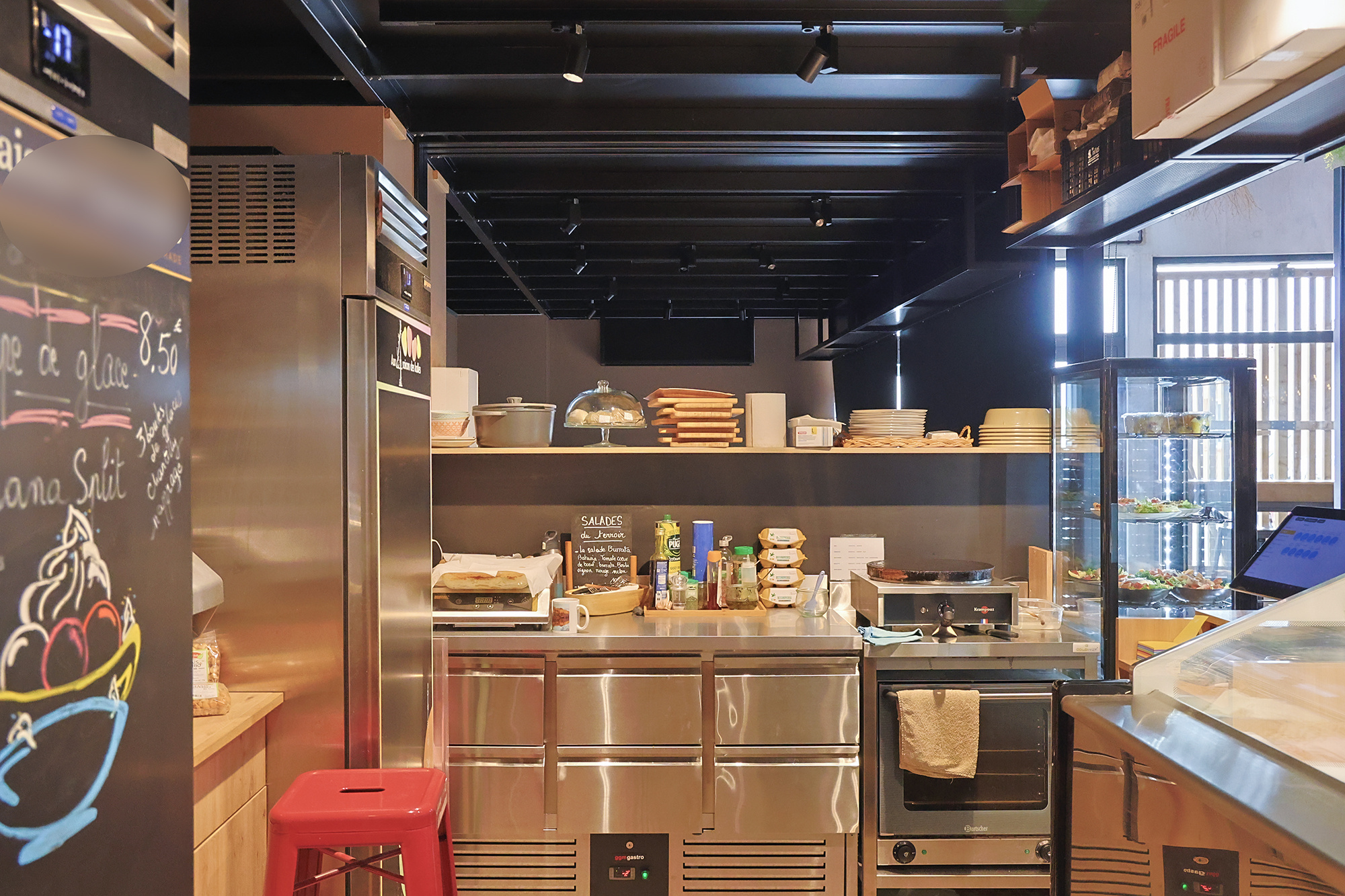 Chaque artisan est équipé de cuisine adaptée et de petits comptoirs pour faire déguster les produits sur place en complément d'espaces assis ainsi que des tables hautes à proximité des stands.