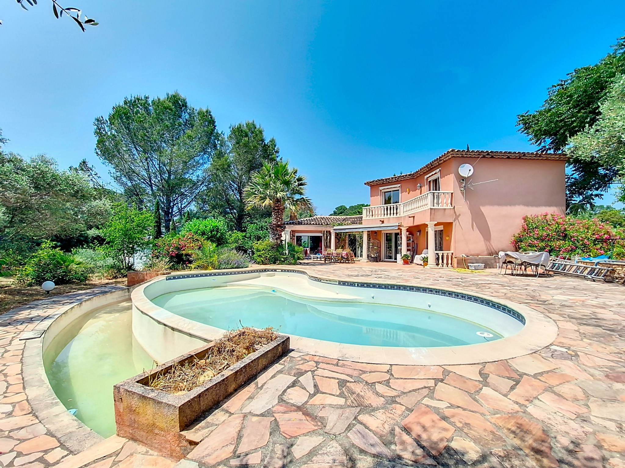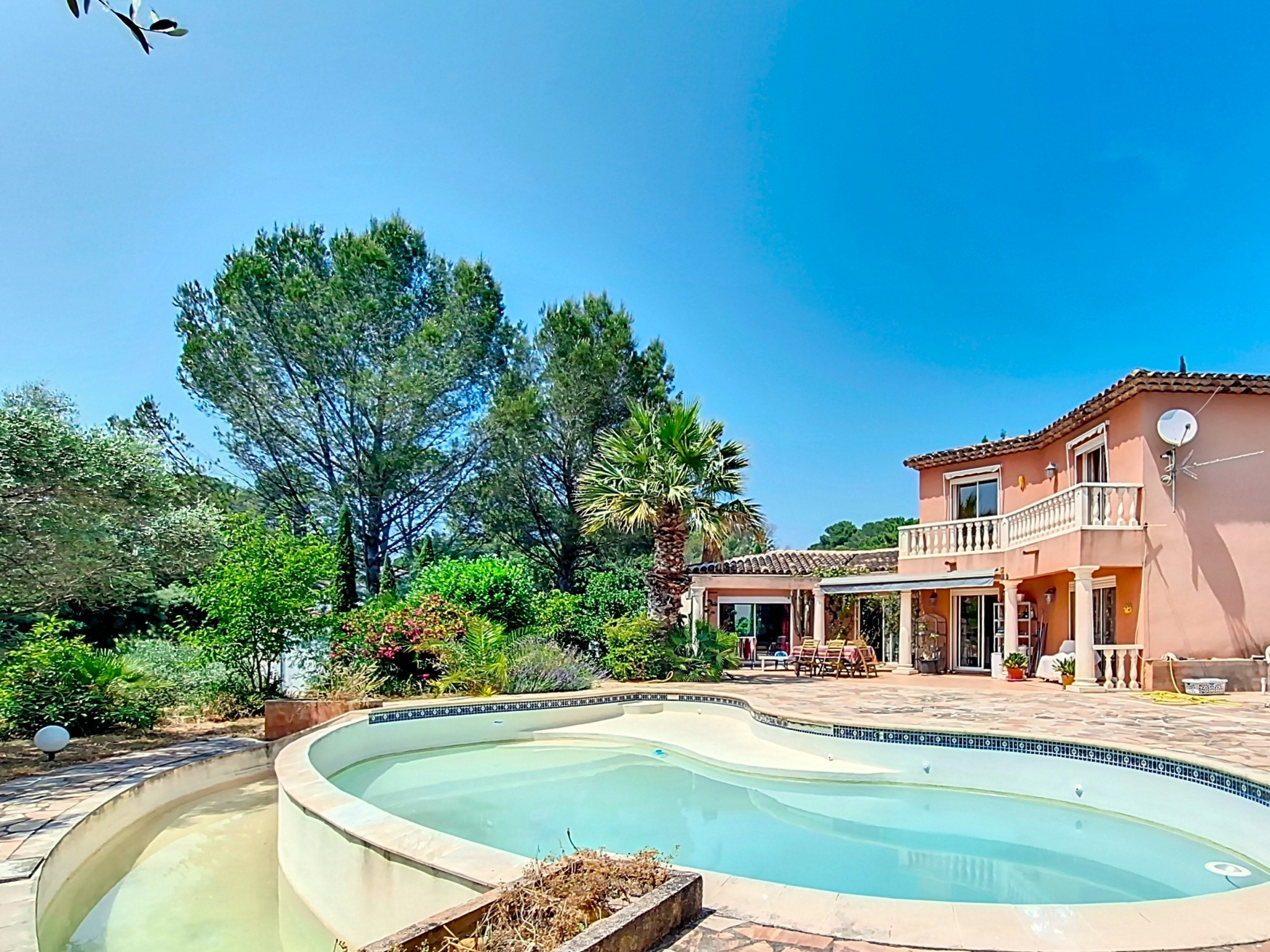 ANDELIM Agence des Golfs 04 83 12 06 26 - Situation privilégiée dans le quartier très prisé de Valescure les Golfs, cette villa de 142m2 vous séduira par ces grands volumes sur un terrain de plus de 1600m2 végétalisé d'essences méditerranéennes et entièrement clôturé. Elle s'organise de plain pied, d'une belle entrée, d'un vaste séjour/salon de plus de 50m2 avec sa cheminée et son plafond cathédrale, une cuisine, une suite parentale de 17m2, sa salle de bains et wc, l'ensemble orienté plein sud s'ouvrant sur une grande terrasse, sa piscine à débordement et son jardin. A l'étage, deux grandes chambres de plus de 14m2 s'ouvrant sur un balcon, un bureau, une salle d'eau et un wc. Au sous sol plusieurs dépendances, un garage de plus de 58m2, une salle de jeux, une grande pièce, une salle d'eau une petite cave. Un chauffage au sol grâce à une chaudière à condensation. Nombreuses places de parking.