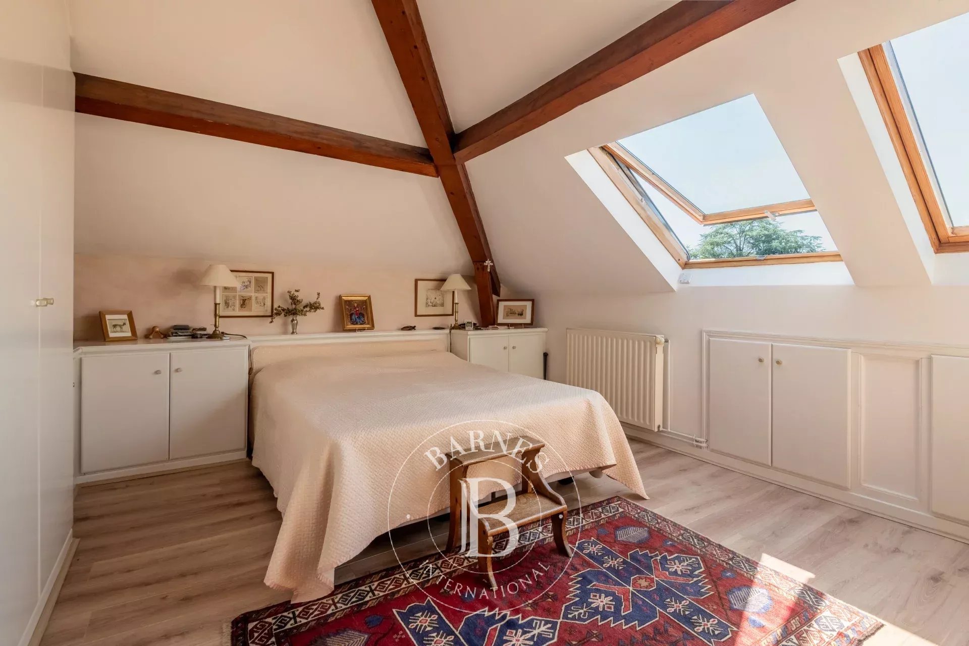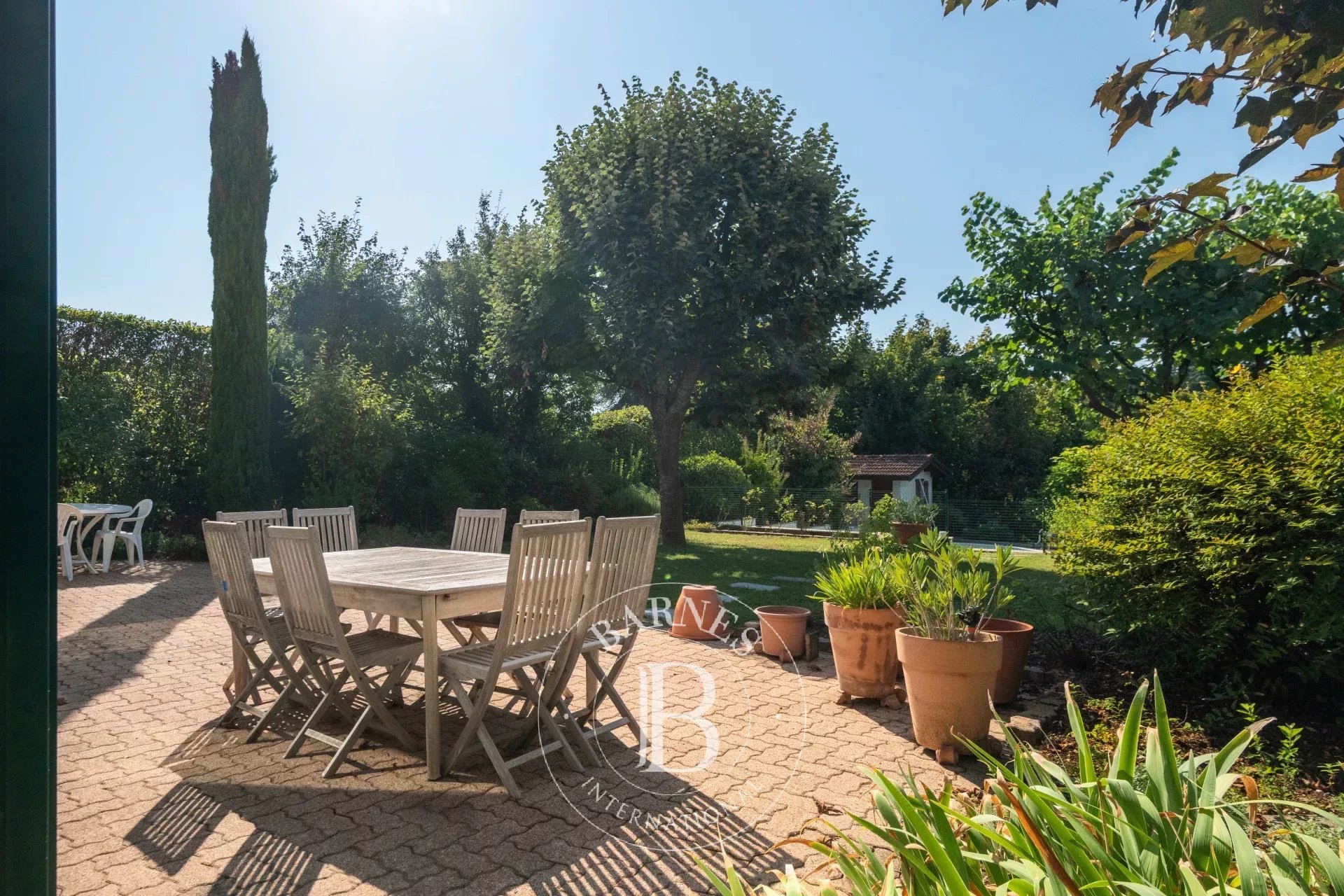 Le tout est complété par un joli jardin paysager avec piscine dans un environnement calme et verdoyant avec vue sur le bois. Plusieurs places de parking complètent ce bien.