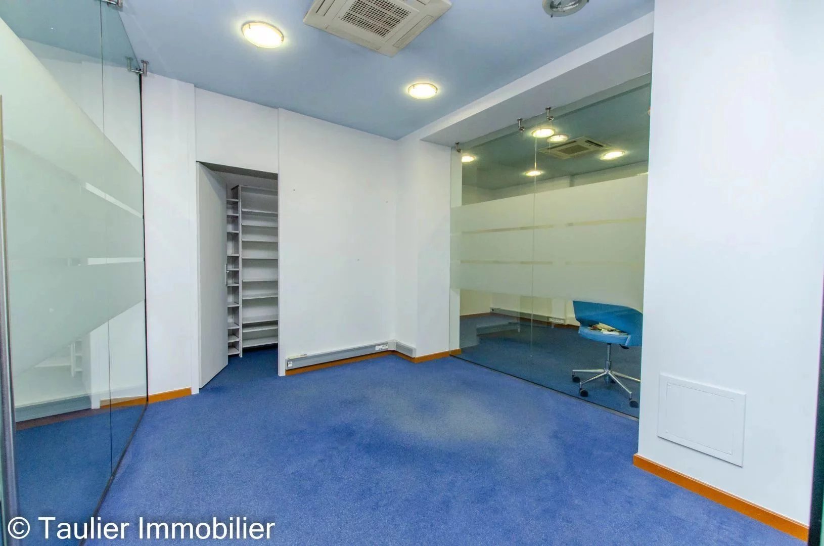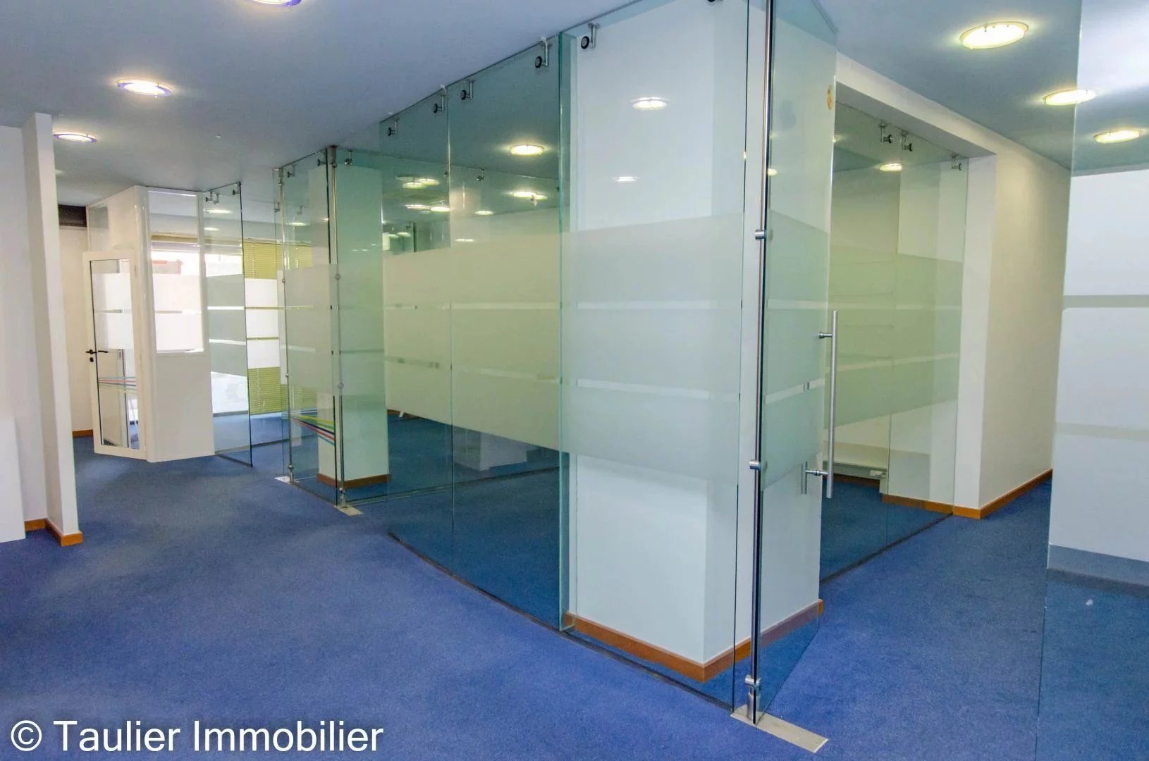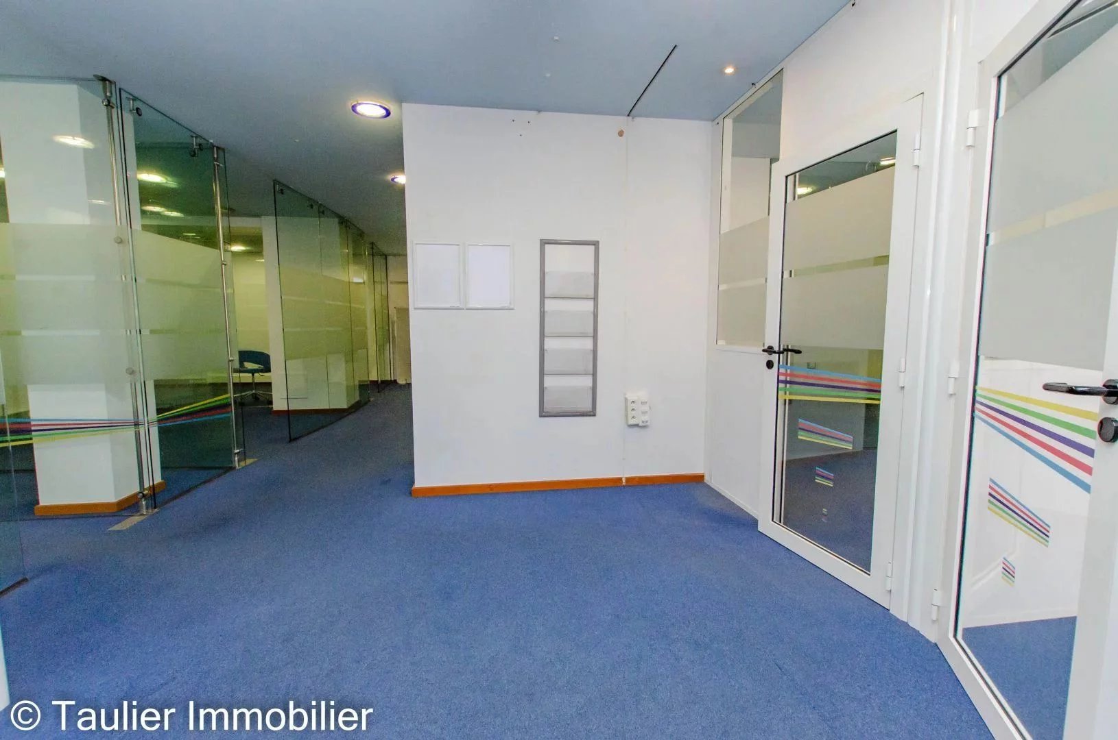 Implanté au rez-de-chaussée, il donne directement sur la rue avec une forte visibilité (grandes vitrines d'environ 10m linéaires), et comprend 7 bureaux et un coin sanitaire.