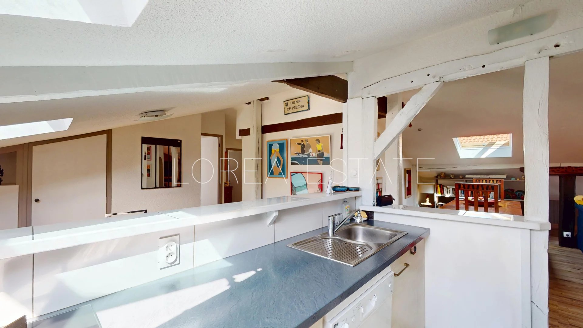 Découvrez ce duplex atypique de 67m2 en dernier étage, situé au calme en plein cœur d’Anglet, à proximité immédiate des commerces, écoles, lycées et transports.