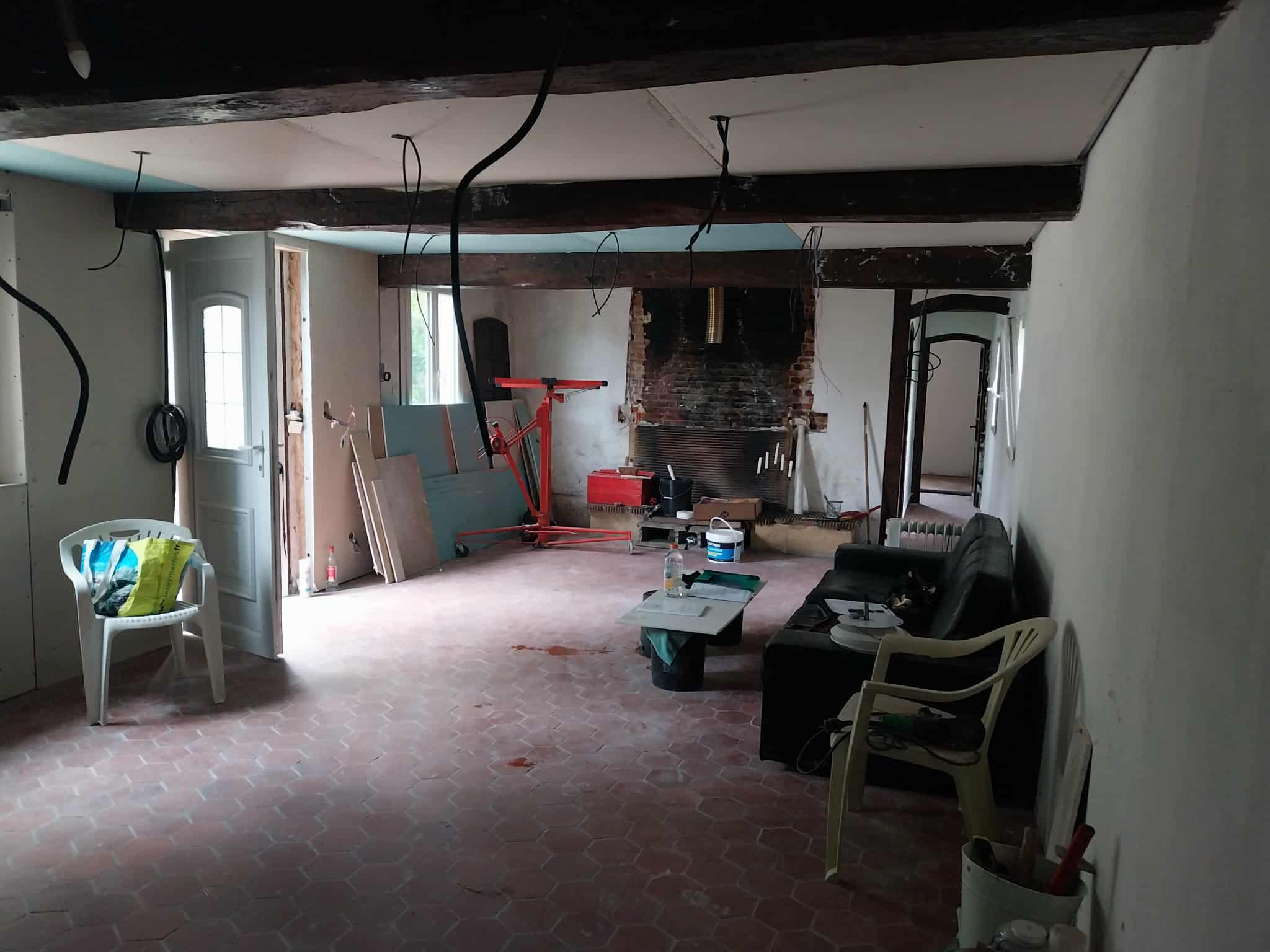 En campagne : Belle longère en partie rénovée comprenant: beau séjour, cuisine, une chambre, salle d'eau, wc et buanderie au rdc. Au 1er étage : 3 chambres. Terrain plat avec ancien four à pain sur environ 5592 m2 . Cadre verdoyant! A découvrir!