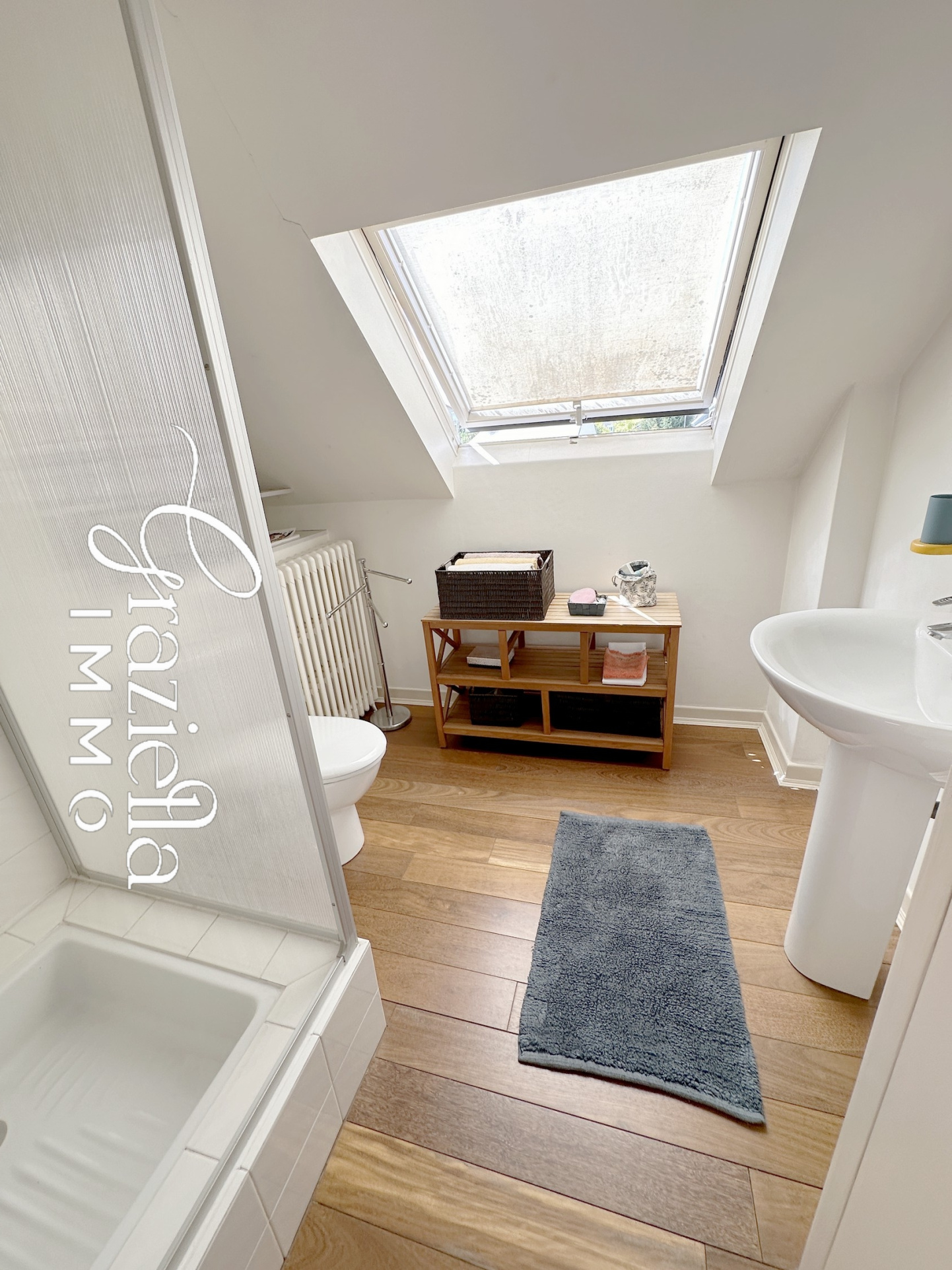 Charme de l'ancien : quelques murs en brasier apparent, magnifiques planchers, belle hauteur sous plafond et radiateurs en fonte