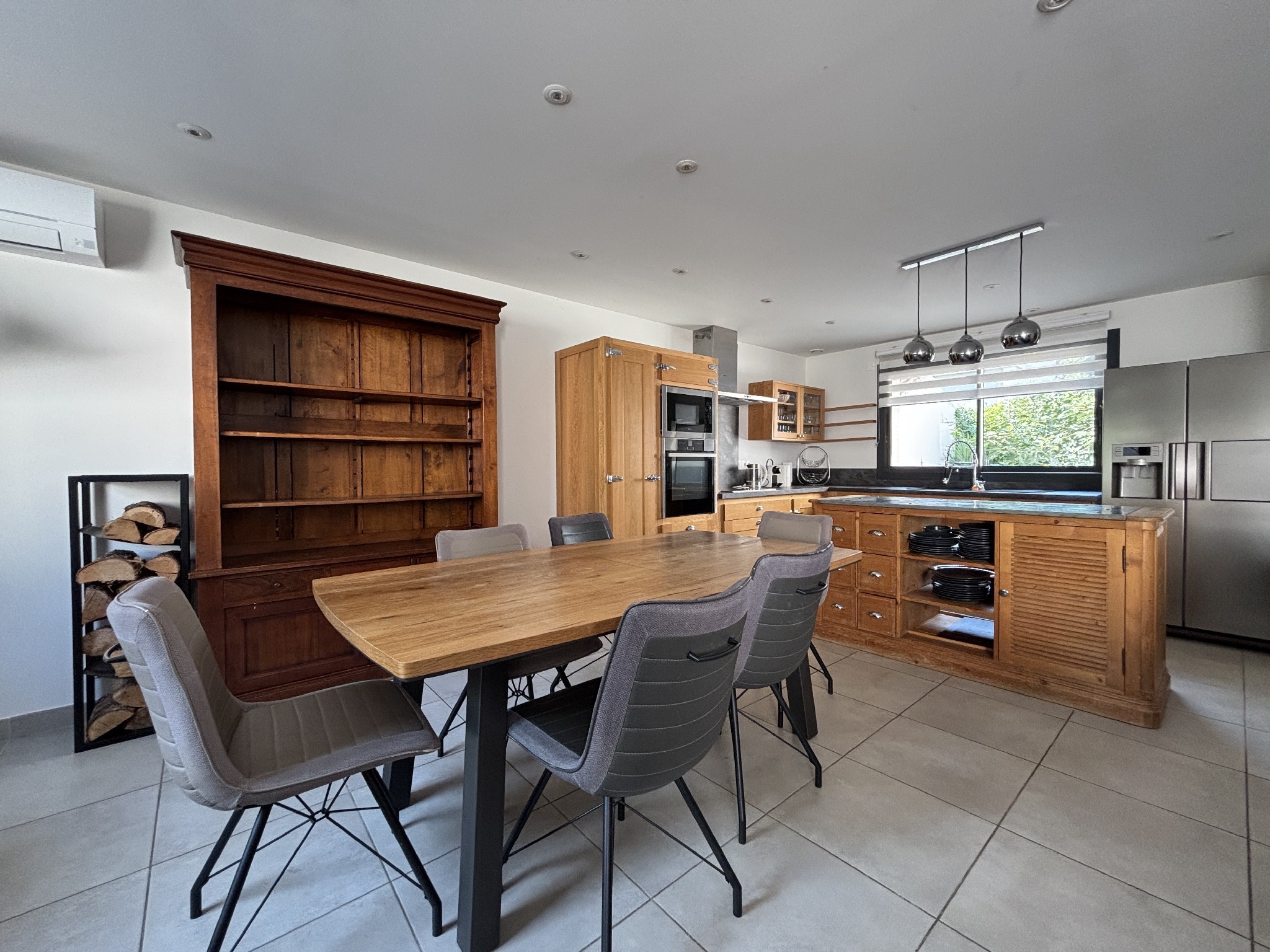 Dès l'entrée, vous découvrez une belle pièce de vie lumineuse de plus de 46 m2 avec cheminée, ouverte sur la terrasse et la piscine, offrant une agréable continuité entre intérieur et extérieur. Un espace idéal pour recevoir et profiter d'une vie de famille conviviale.