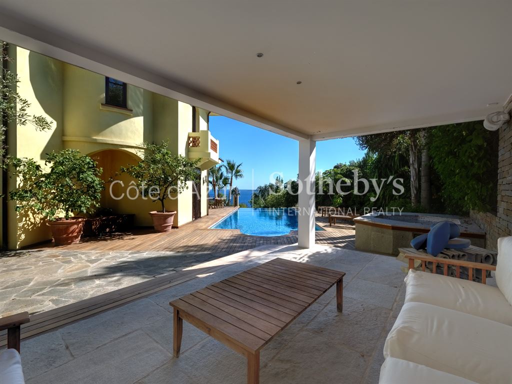 Le niveau principal propose de vastes espaces de réception comprenant un salon, une salle à manger et une cuisine contemporaine haut de gamme, tous ouverts sur les jardins et la mer. À l’étage, la partie nuit offre une suite parentale avec dressing, bureau, salle de bains et deux balcons avec vue mer, ainsi qu’une deuxième chambre en suite orientée vers la Méditerranée. Le niveau jardin accueille deux chambres supplémentaires, un salon privé, une cave à vin en chêne et une buanderie.