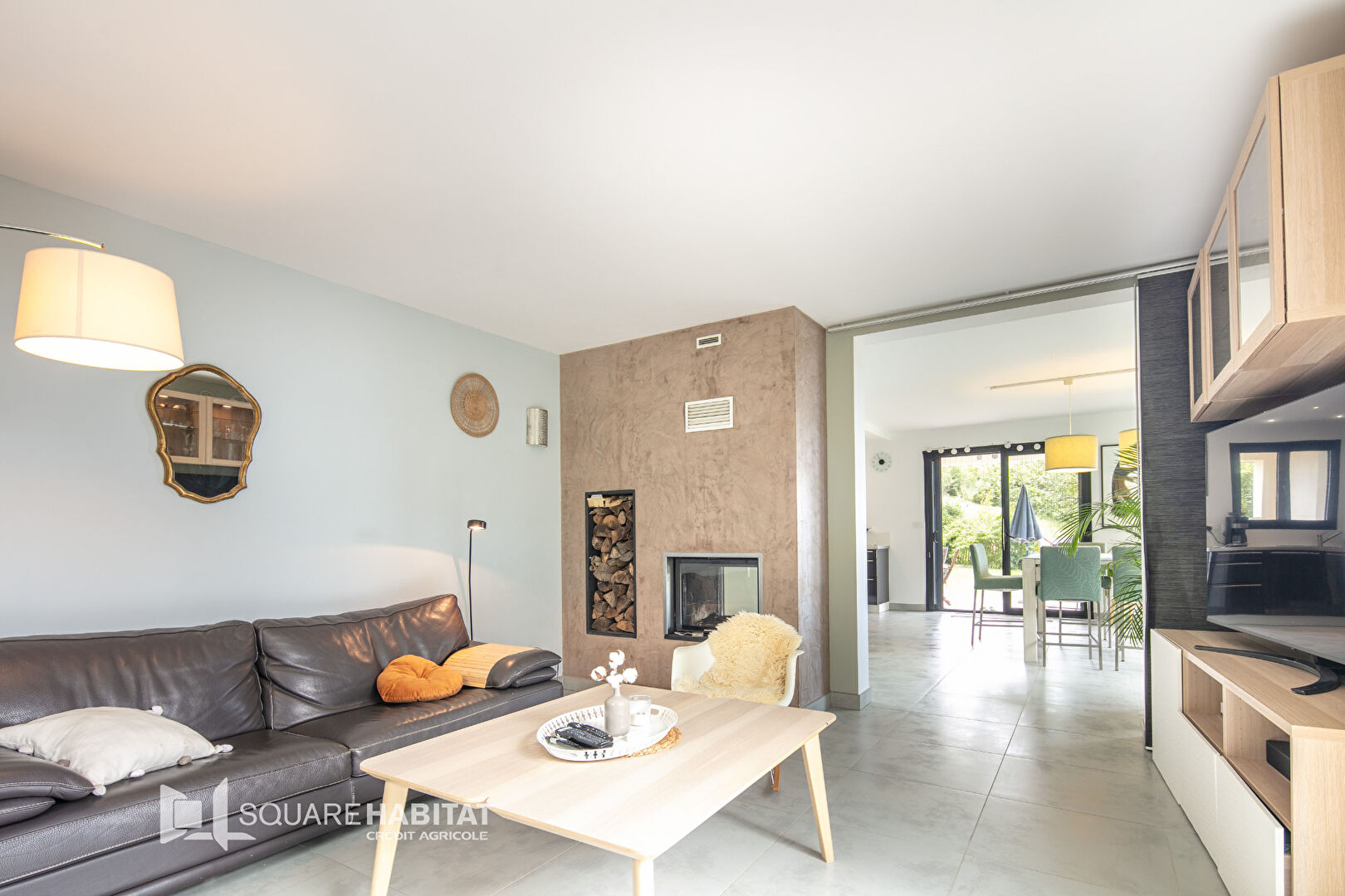 - Chauffage par pompe à chaleur (plancher chauffant + radiateurs) et cheminée bois double face