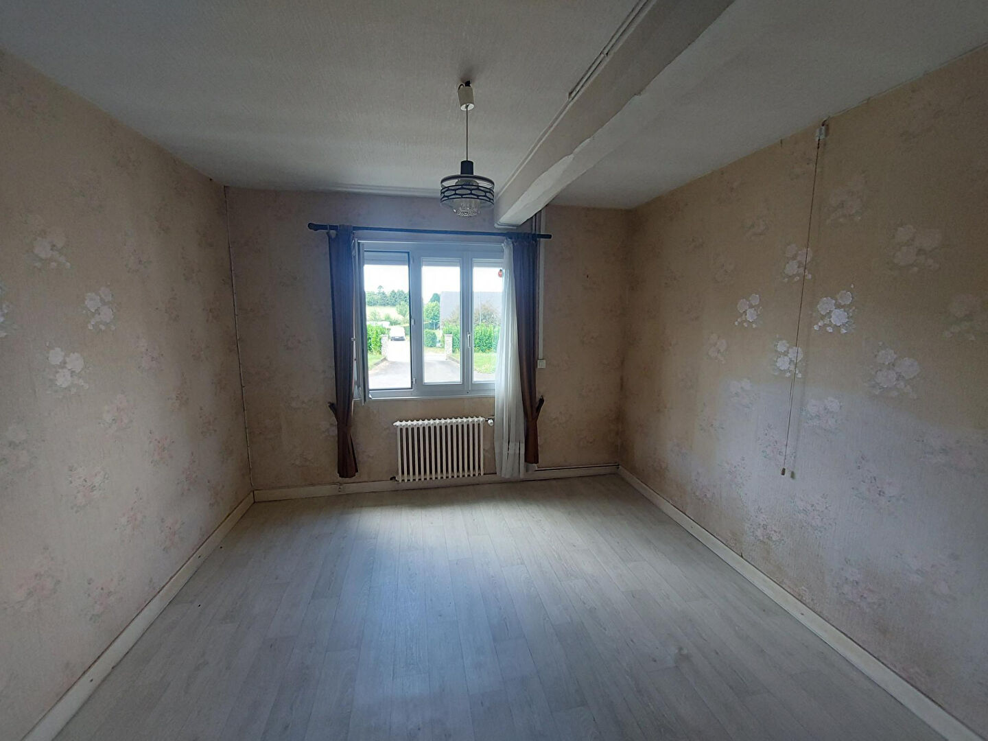 hall d'entrée sur pièce de vie de 43 M2, véranda d'été, cuisine, salle d'eau avec sanitaire, couloir de dégagement, trois chambres, placard, chaufferie,