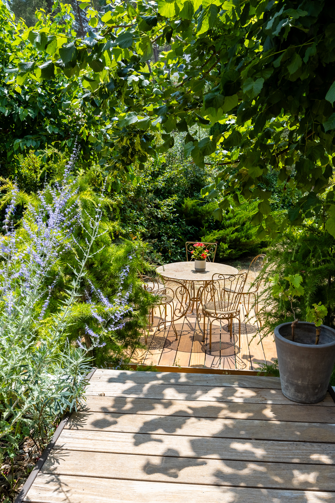 Le terrain de 2528 m² est un véritable havre de paix, planté de multiples essences méditerranéennes (mûriers, oliviers, cyprès, cerisiers, arbousiers, figuiers…) où le chant des oiseaux accompagne chaque instant.