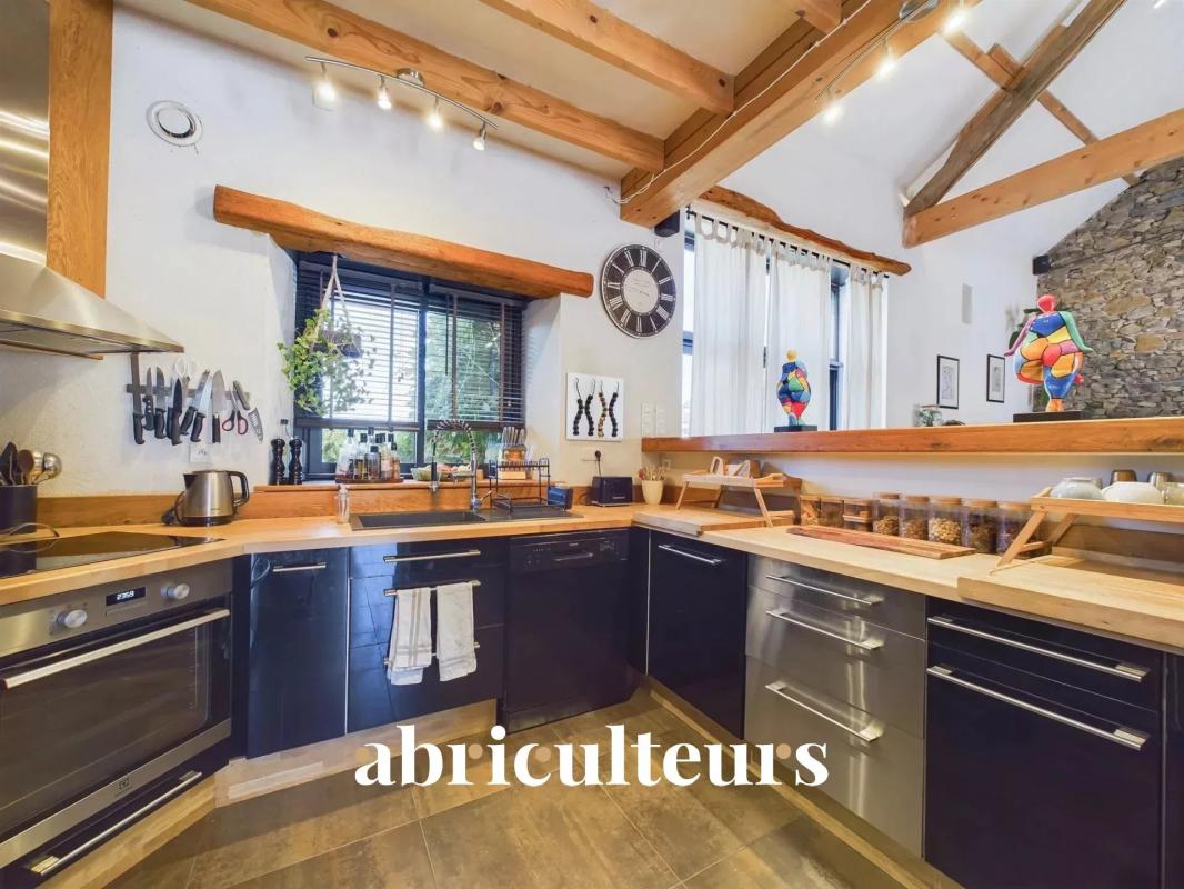 Laissez-vous séduire par le charme de cette vaste maison où l'ancien et le moderne se marient harmonieusement. Avec ses poutres apparentes, ses murs en pierre et ses équipements contemporains tels que la pompe à chaleur, le chauffage au sol et les volets électriques, cette maison offre un cadre de vie très confortable