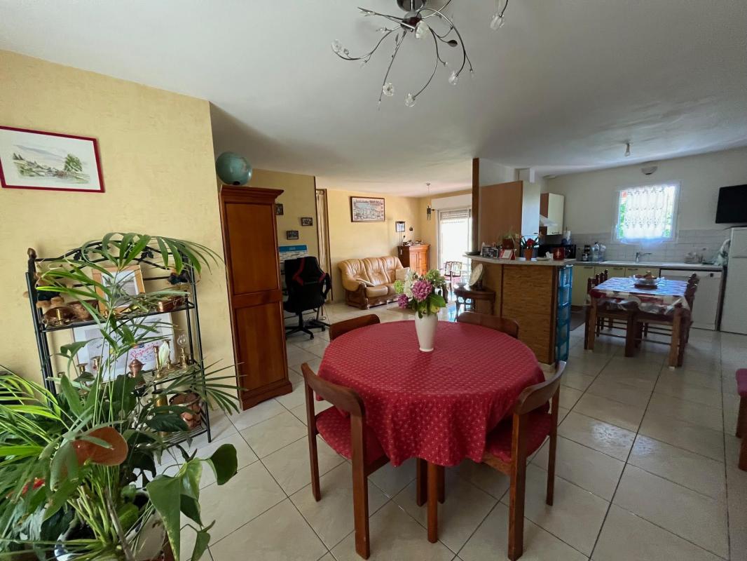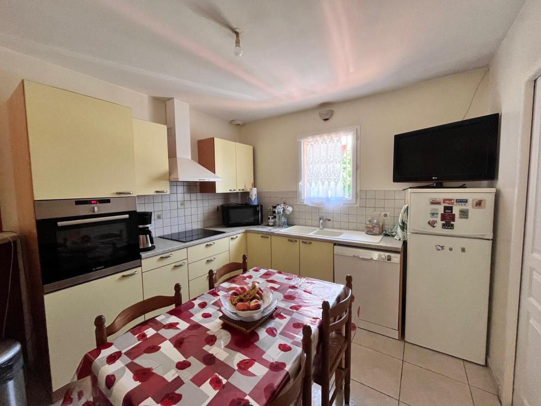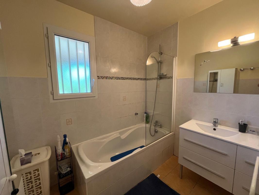 Séjour / salle à manger, cuisine aménagée, 3 chambres, salle de bains, grand cellier et un bureau. Climatisation réversible