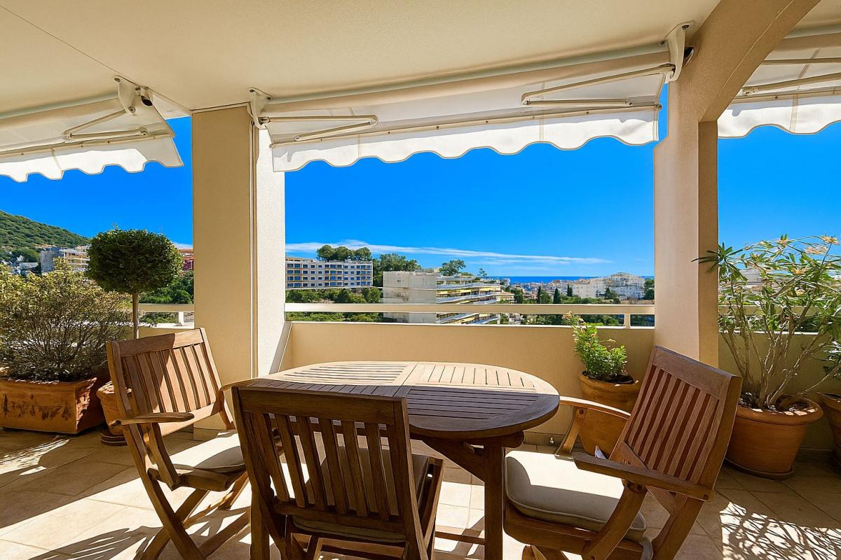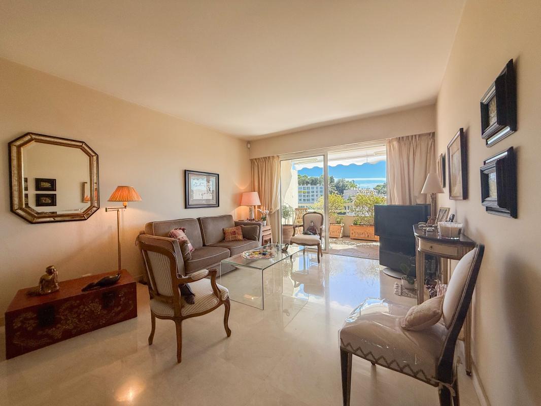Un grand séjour lumineux ouvrant sur une spacieuse terrasse de 23 m² exposée plein sud offrant une vue mer.