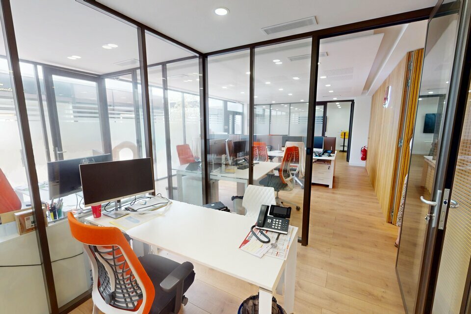 BUREAUX de 122m² en étage composés d'un open-space, de trois bureaux, d'une salle de réunion, d'un espace détente avec cuisine, d'un local archives/informatique et de sanitaires.L'ensemble dispose de deux entrées palières.2 parkings privatifs inclus dans le prix.