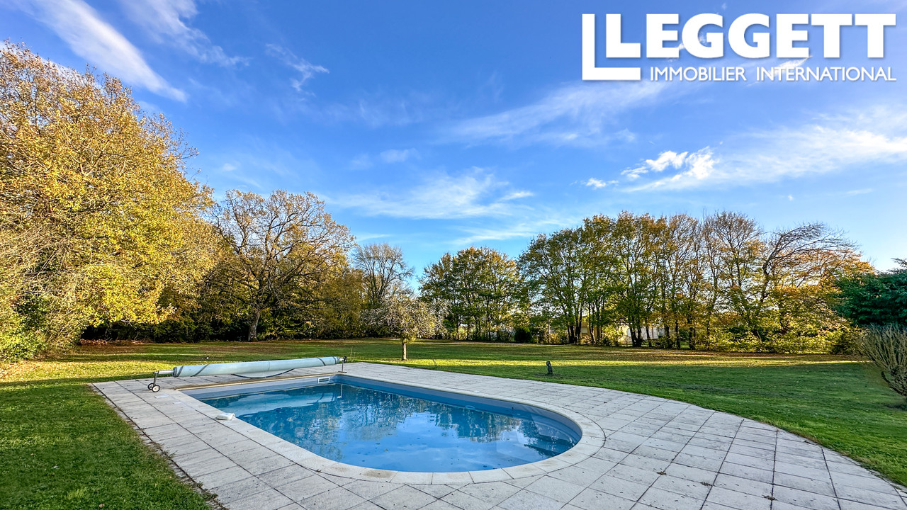 Maison individuelle avec un jardin arboré et une piscine chauffée (10 m x 5 m) dotée d'un nouveau liner.
