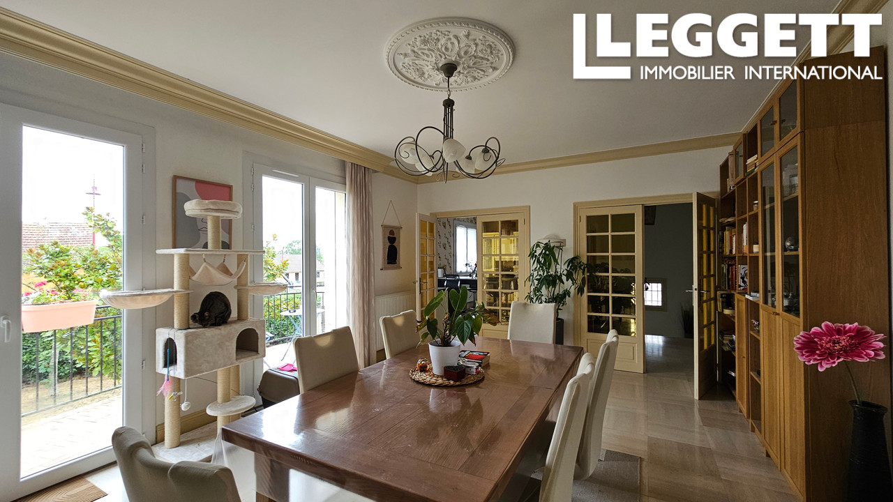 A39650ABR03 - Maison familiale rénovée de 178 m² sur un terrain de 2 778 m², entourée d'un jardin paysager mature. Les extérieurs offrent plusieurs terrasses, couvertes et découvertes, idéales pour profiter du plein air. La maison se développe sur trois niveaux : rez-de-jardin avec cuisine d'été, accès direct au jardin et chambre ; premier étage avec cuisine équipée, vaste séjour/salle à manger, chambre et salle d'eau ; deuxième étage avec chambres, salle d'eau et grenier aménageable.