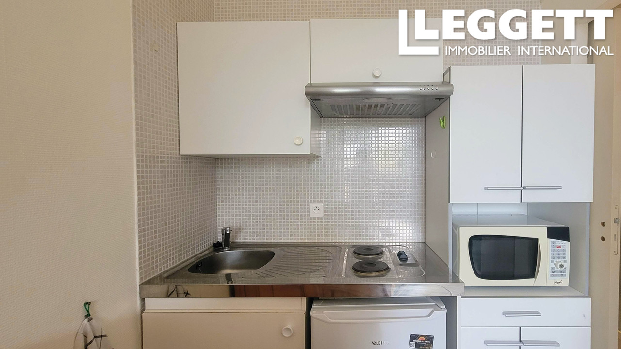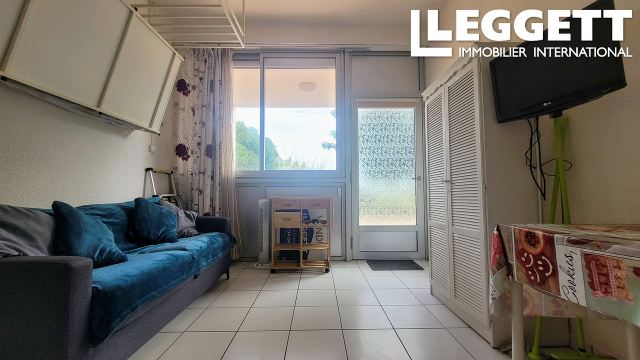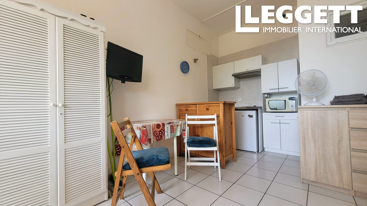 À vendre : studio meublé de 17,51 m² situé en rez-de-chaussée dans une résidence prisée avec piscine et jardins, offrant un accès direct à la plage, sans route à traverser.