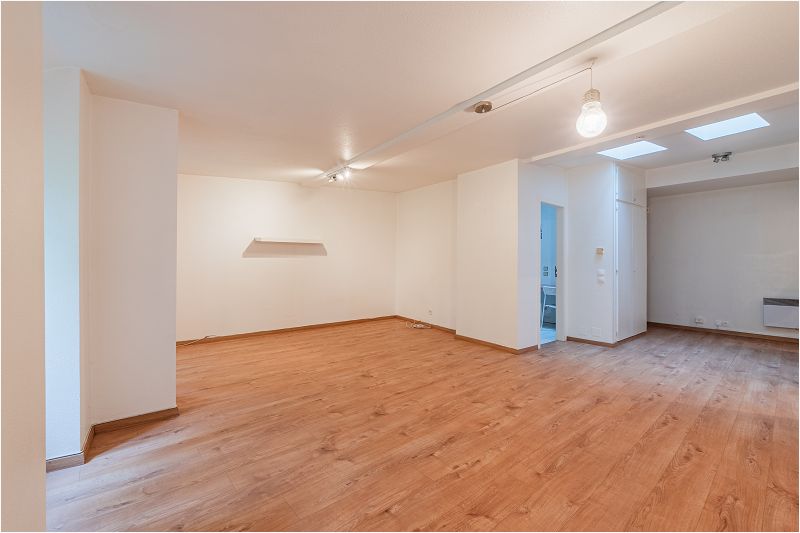L?appartement dispose d?une entrée dégagement avec placard, d?une pièce de vie de 36,57m² (possibilité de la séparer afin d?obtenir un 3 pièces), d?une chambre, d?une cuisine équipée séparée et d?une salle de bains avec baignoire, douche, double vasque et branchement machine à laver. Un WC séparé avec lave-mains et placards. Une cave en sous-sol complète le bien.