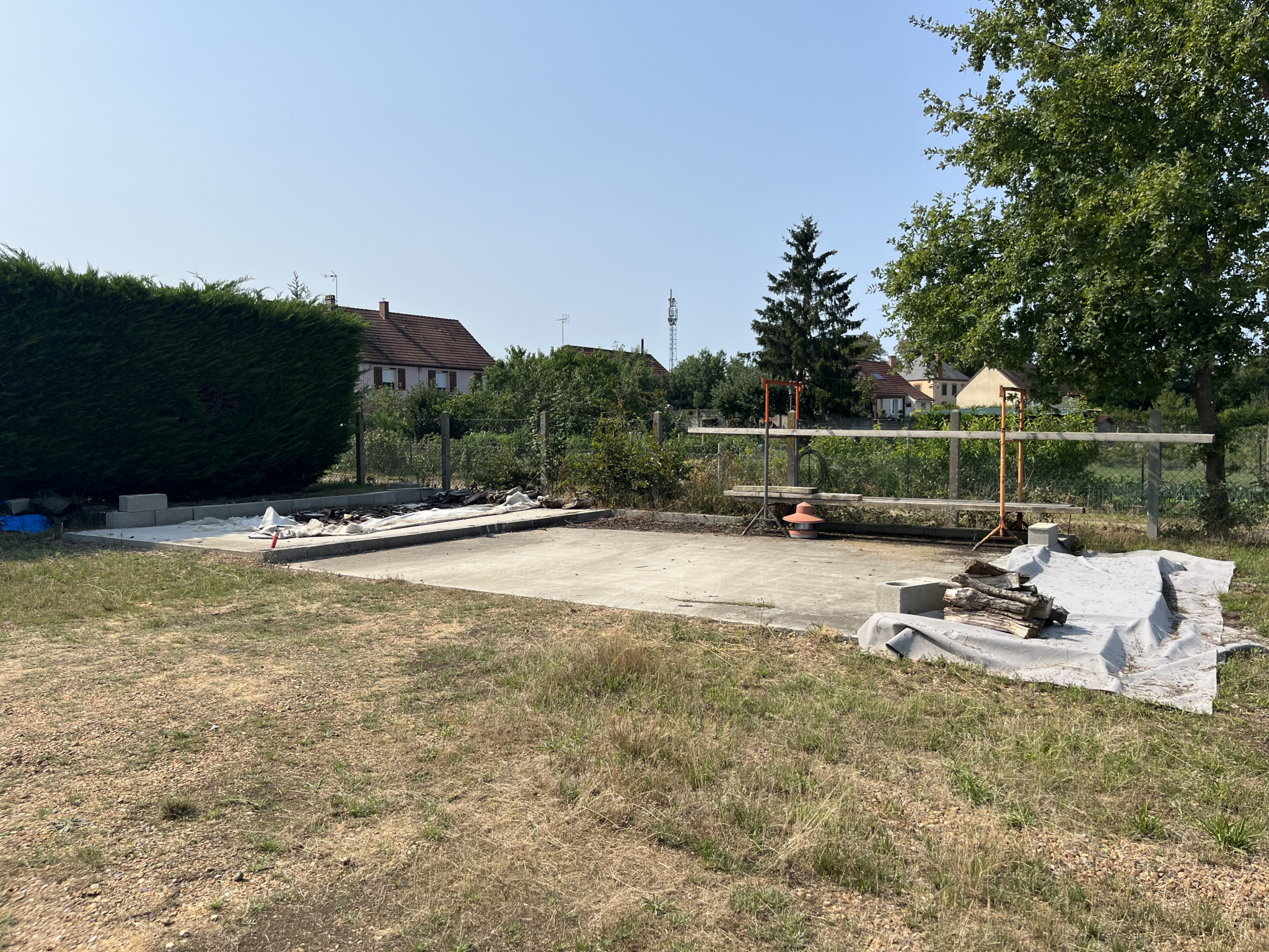 Portail avec belle entrée côté rue, terrain d'agrément puis dépendances sur l'arrière. Dalle et fondations en béton environ 60m2 au sol avec Permis de Construire prêt à recevoir un bâtiment à usage d'atelier et/ou garage.