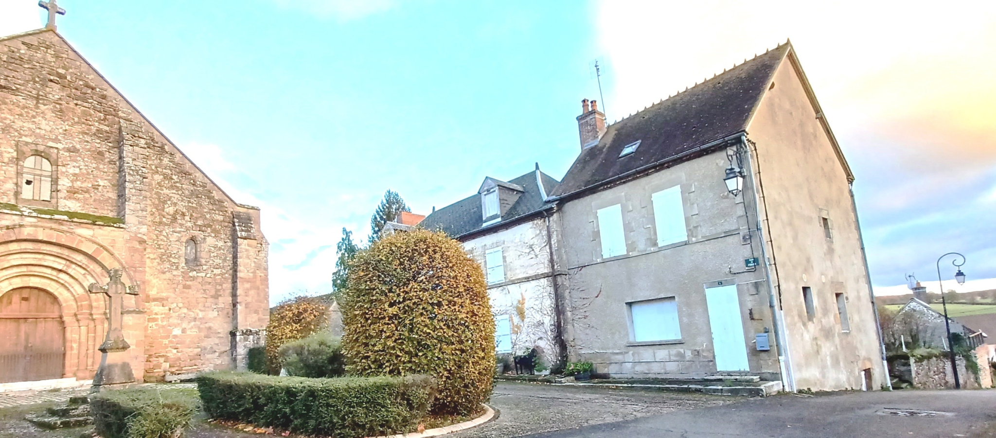 Maison de pierres avec vue sur superbe petite église du XIIe du village calme et tranquille à 12 minutes de Bourbon.