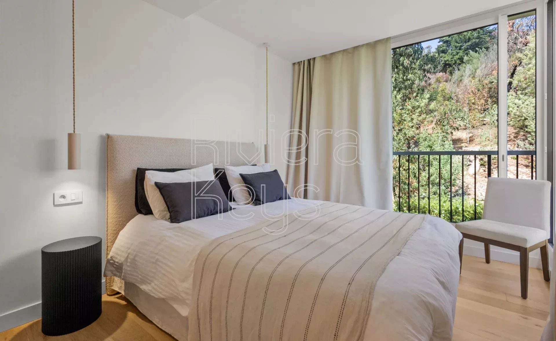 Il comprend une entrée élégante, une vaste pièce de vie lumineuse avec cuisine ouverte et équipée, donnant sur les jardins. L’espace nuit offre 2 chambres et 2 salles de bain, dont une suite parentale avec terrasse et magnifique vue mer.