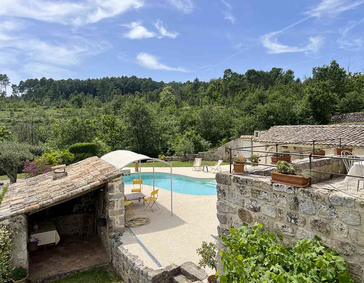 À 15 minutes de JOYEUSE : un exceptionnel mas rénové de 196 m2 habitables avec un terrain de 1,6 ha avec des oliviers et une piscine avec poolhouse. La demeure se compose au premier étage d'un salon cathédrale avec cheminée, d'une salle à manger, d'une cuisine aménagée, d'une chambre parentale avec une salle d'eau et un espace nuit composé de deux chambres et d'une salle de bains. Au deuxième étage, une mezzanine à usage de bureau, deux chambres, une salle d'eau et un dressing. L'ensemble est élevé sur plusieurs caves voûtées et un spacieux garage. En annexe, une serre chauffée, un authentique four à pain, une dépendance en pierre à usage de garage. 200 m2 de parking avec un abri voiture. Fosse septique. Chauffage central (en partie avec plancher chauffant) par pompe à chaleur/chaudière fioul (y compris poolhouse, garage et serre), climatisation réversible, aspiration centralisée, eau de ville, eau de forage et source.