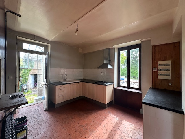 Une maison d'habitation élevée sur cave comprenant au rez-de-chaussée: un grand séjour et une cuisine ouverte , une chambre ou bureau , à demi étage une salle d'eau, WC.
