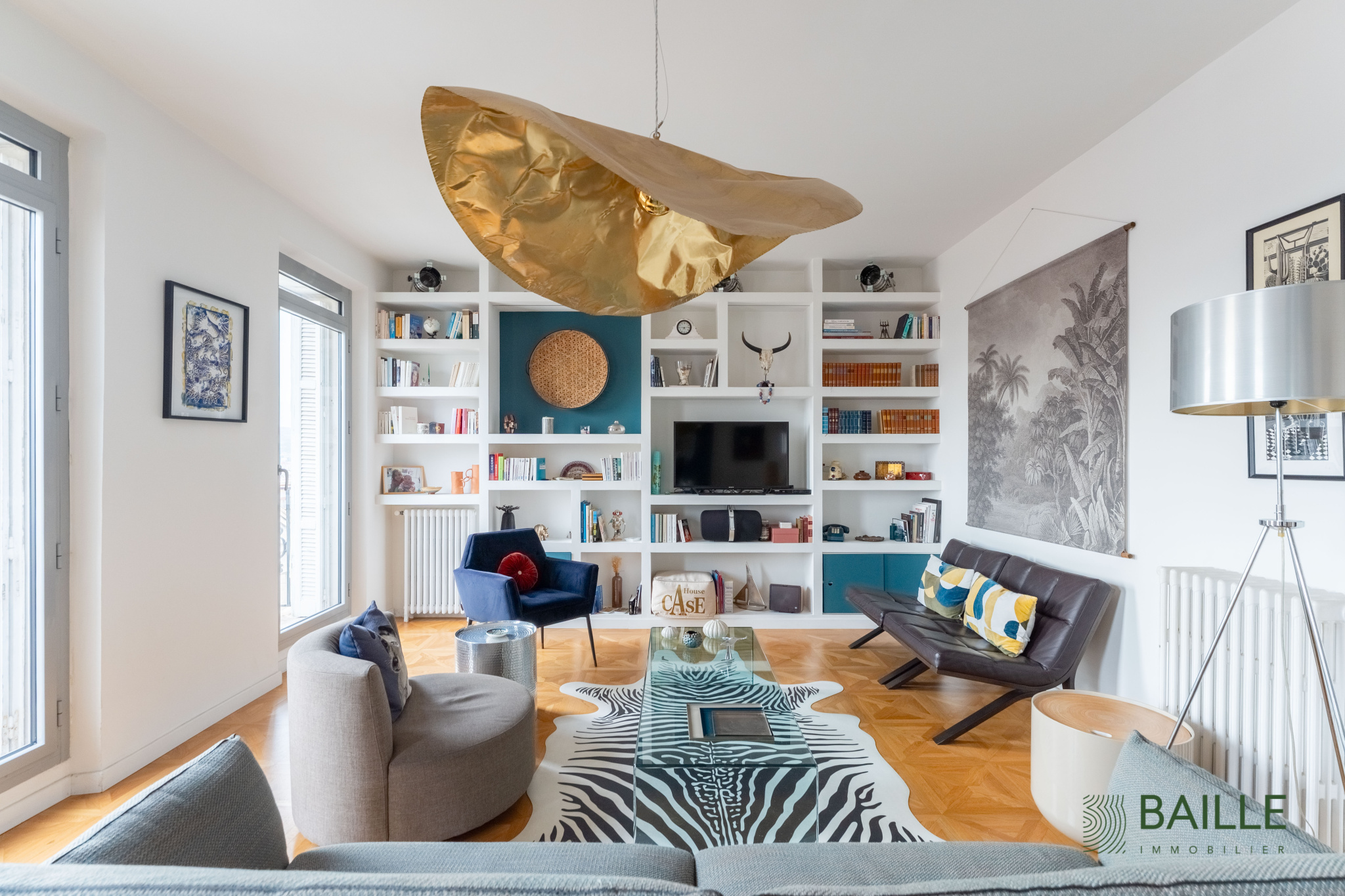 Au dernier étage d'un bel immeuble ancien avec ascenseur, ce vaste 4/5 pièces de 164 m2 séduit par ses volumes, sa luminosité et son atmosphère raffinée.