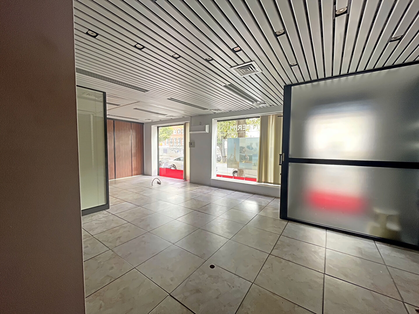 Espace Clientèle : Grande zone d'accueil ou d'exposition à l'entrée, parfaite pour recevoir le public.