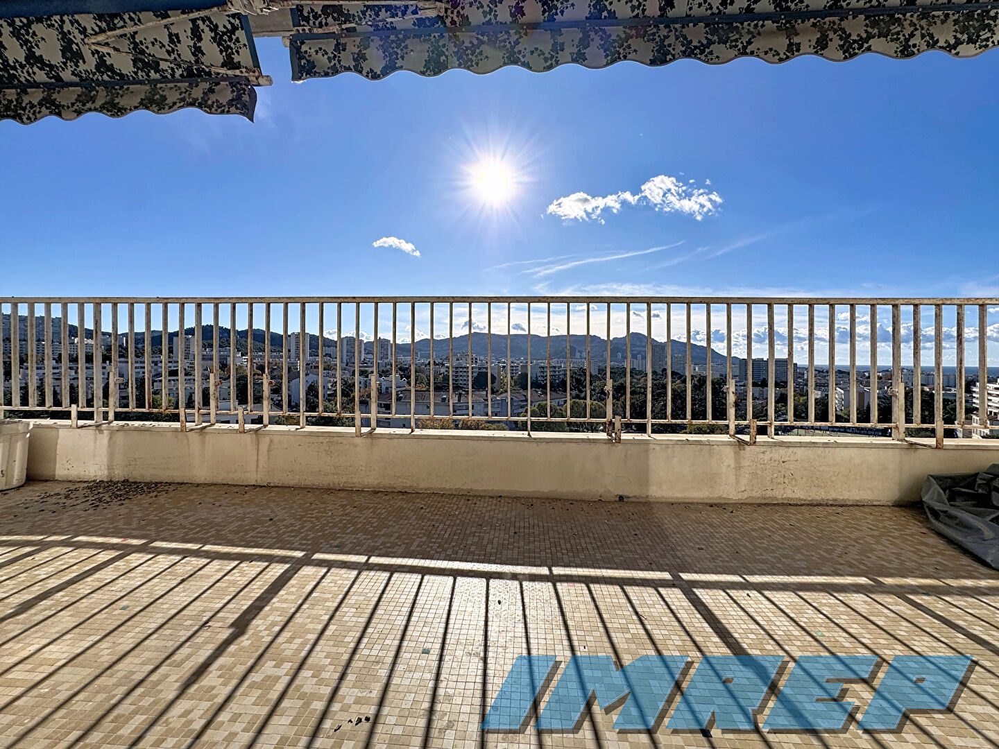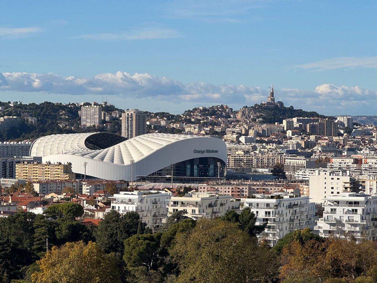 Le salon de 45 m², accompagné de sa cheminée, déroule ses mètres carrés comme une invitation à recevoir, qui profite d'une vue panoramique mer et ville depuis la terrasse de 16 m².