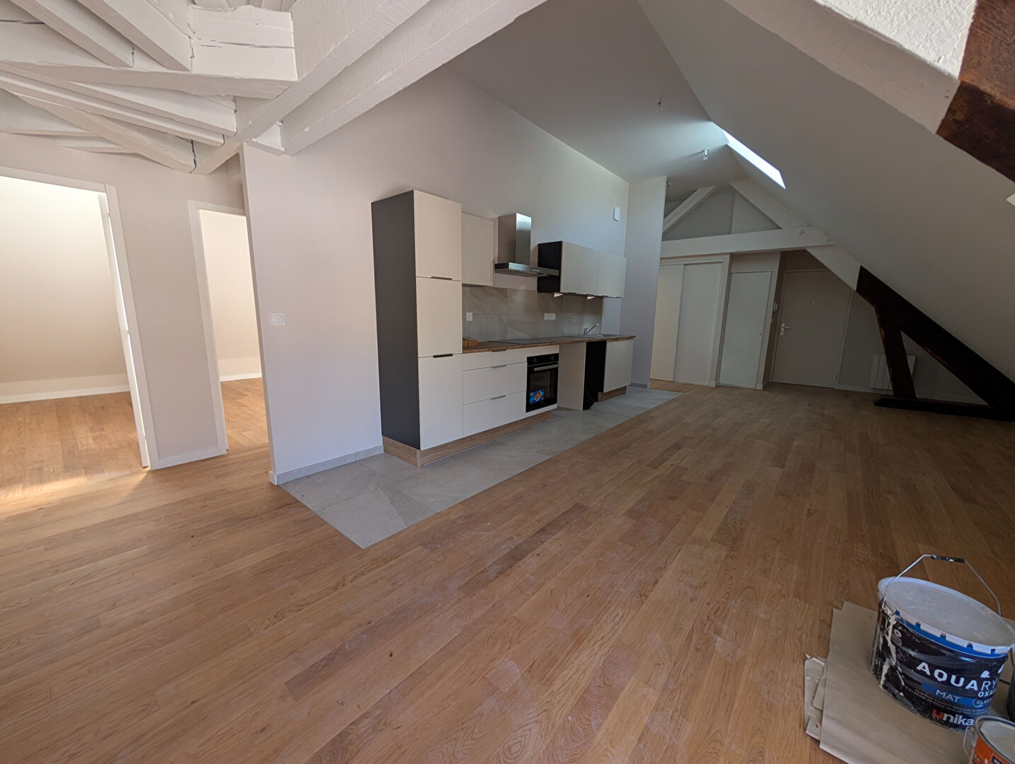 VIENNE - Nord - 38200 - Secteur Bon Accueil - Ancien couvent réhabilité - Beaucoup de charme pour cet APPARTEMENT mansardé au 3ème et dernier étage - Volume au sol de 111 M² et surface carrez de 75 M² - Habitation originale comprenant une pièce à vivre entièrement ouverte de 39 M² avec cuisine ouverte et équipée - Poutres apparentes, plafond rampant , vélux, et baie coulissante au soleil levant - Agréable terrasse de 60 M² au sud/est avec vue dégagée - 3 chambres - 2 pièces d'eau - Cave et parking aérien -