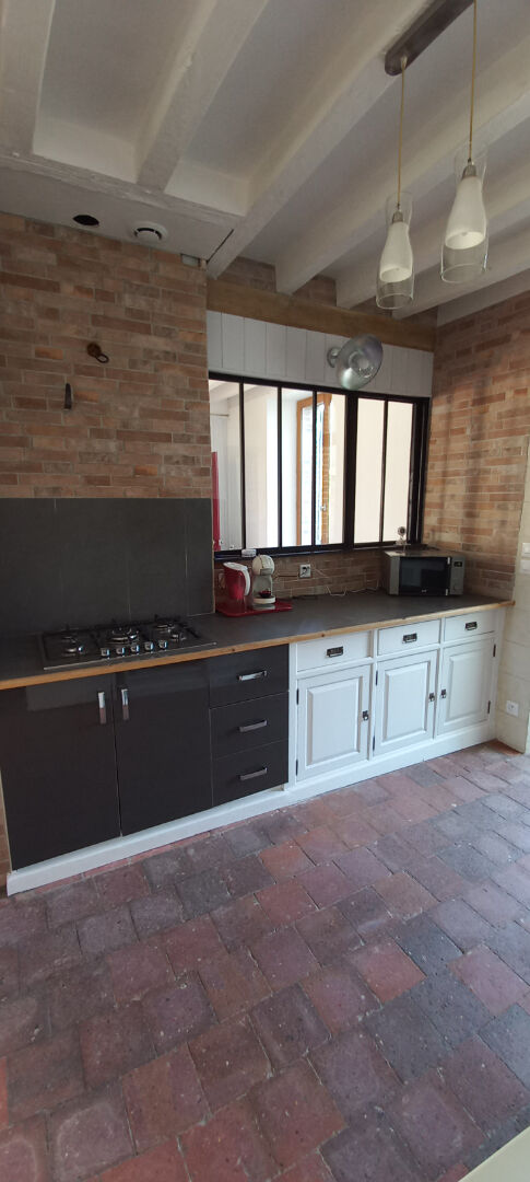 maison entièrement rénovée comprenant une cuisine aménagée, une pièce de vie, une salle de bains, une chambre et un WC. A l'étage, palier desservant deux chambres, un WC et une salle d'eau. Véranda.